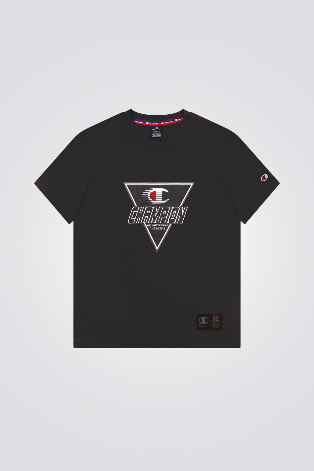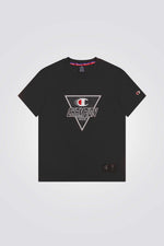 טישירט לגברים מבית המותג CHAMPION, בצבע שחור עם לוגו המותג, שרוולים קצרים וצווארון עגול .