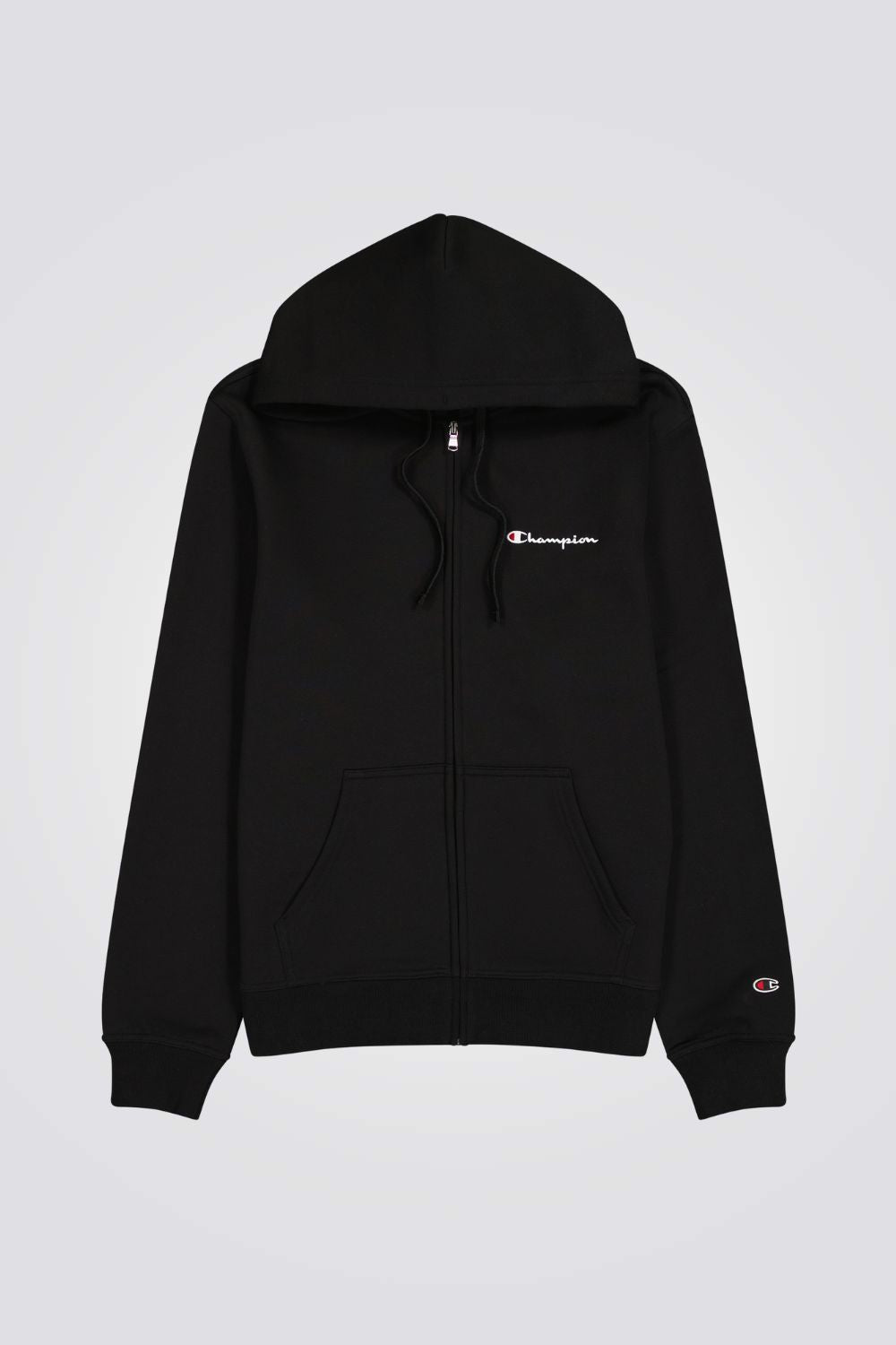 סווטשירט קפוצ'ון לגברים מבית המותג CHAMPION, בצבע שחור, מחמם ונעים עם לוגו המותג, סגירת רוכסן ושני כיסים צדדיים.