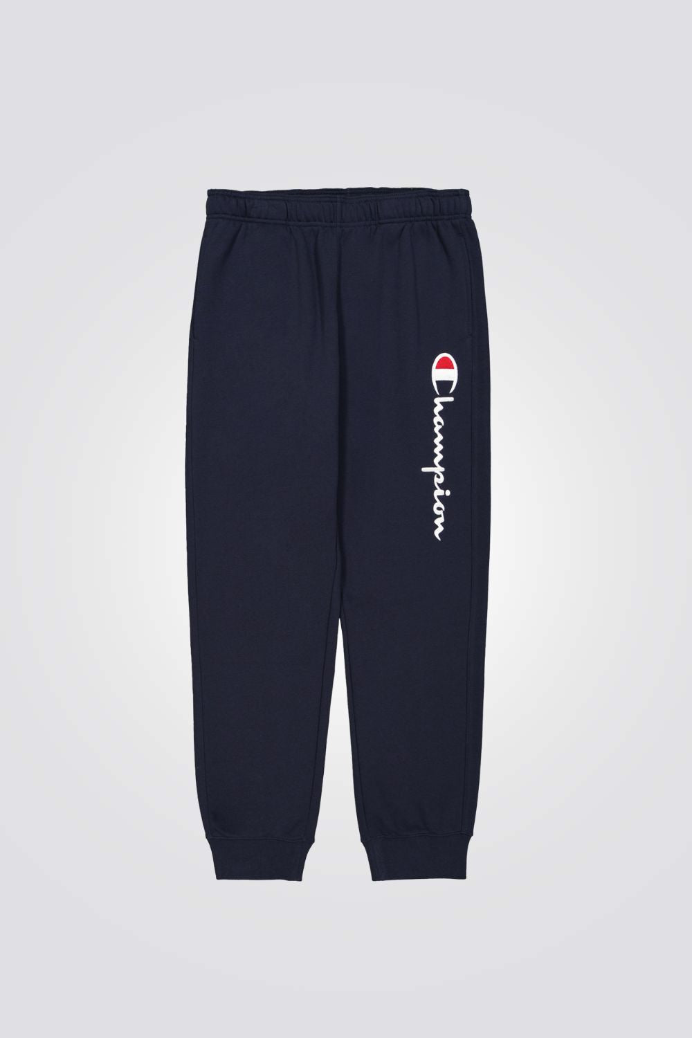 מכנסי טרנינג לגברים מבית המותג CHAMPION, בצבע נייבי עם לוגו המותג, מותן אלסטית וסיומת גומי ברגליים.
