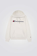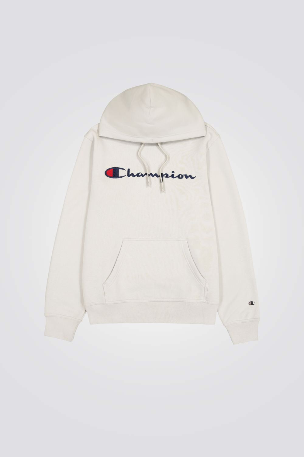 סווטשירט לגברים מבית המותג CHAMPION, בצבע אוף ווייט עם קפוצ'ון לוגו המותג וכיס קנגרו מקדימה.