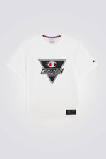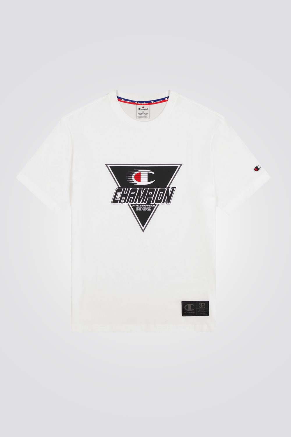 טישירט לגברים מבית המותג CHAMPION, בצבע לבן עם לוגו המותג, שרוולים קצרים וצווארון עגול .