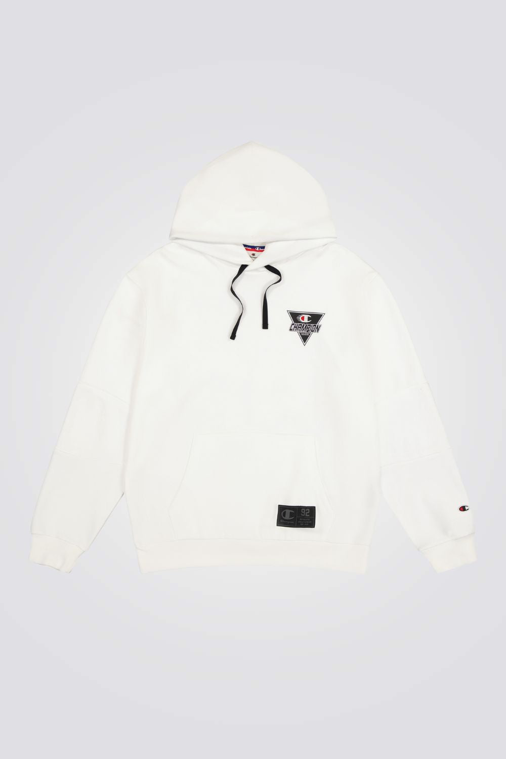 סווטשירט לגברים מבית המותג CHAMPION, בצבע לבן עם קפוצ'ון ,לוגו המותג וכיס קנגרו מקדימה.