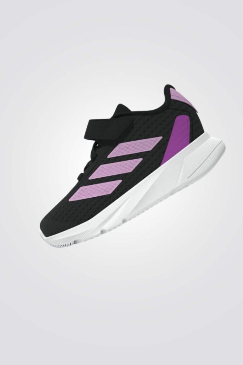 נעלי ספורט מבית המותג ADIDAS בצבעי שחור וסגול, נעליים קלות משקל העשויות בחלקן מחומרים ממוחזרים.