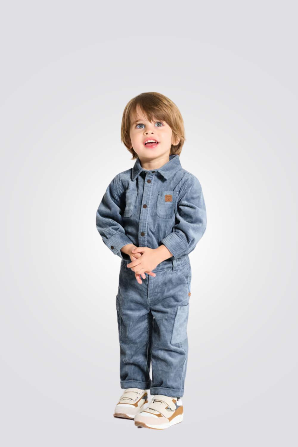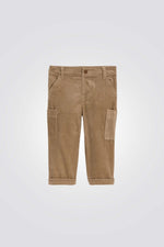מכנסי קורדרוי לתינוקות מבית המותג OBAIBI, נוחים ומחממים , מותן אלסטית מתכווננת, בגזרה ישרה עם סגירת כפתור.