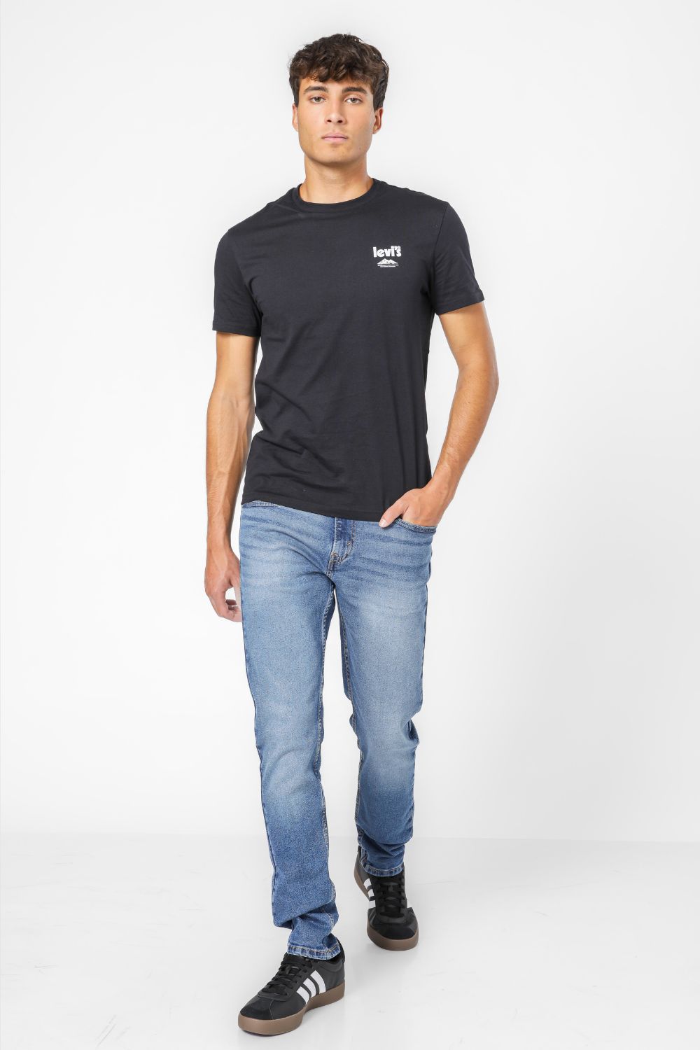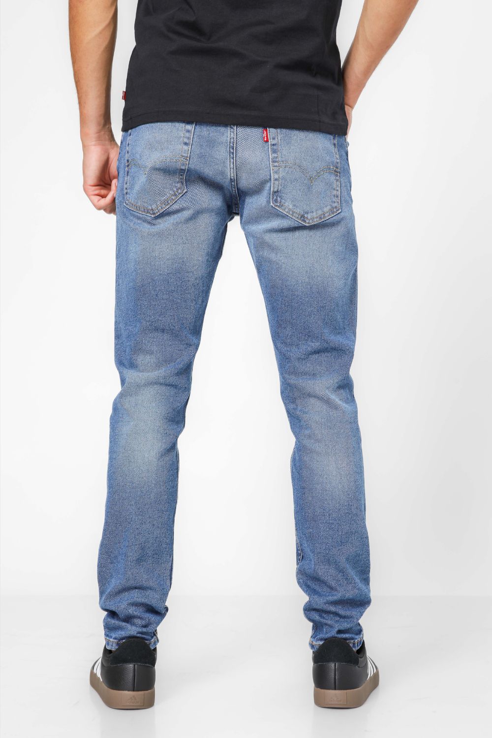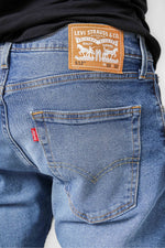 ג'ינס מבית המותג Levi's לגברים בצבע כחול, בגזרה ישרה, בגובה המותן, בעל רוכסן וכפתור לפתיחה וסגירה וכיסים קדמיים ואחוריים.