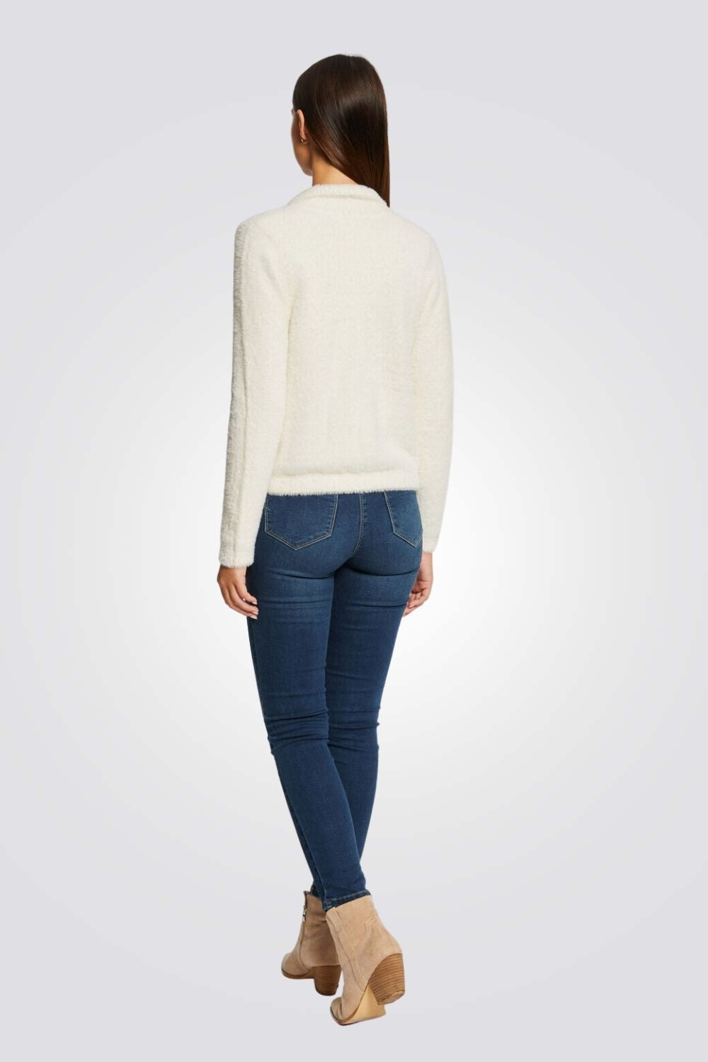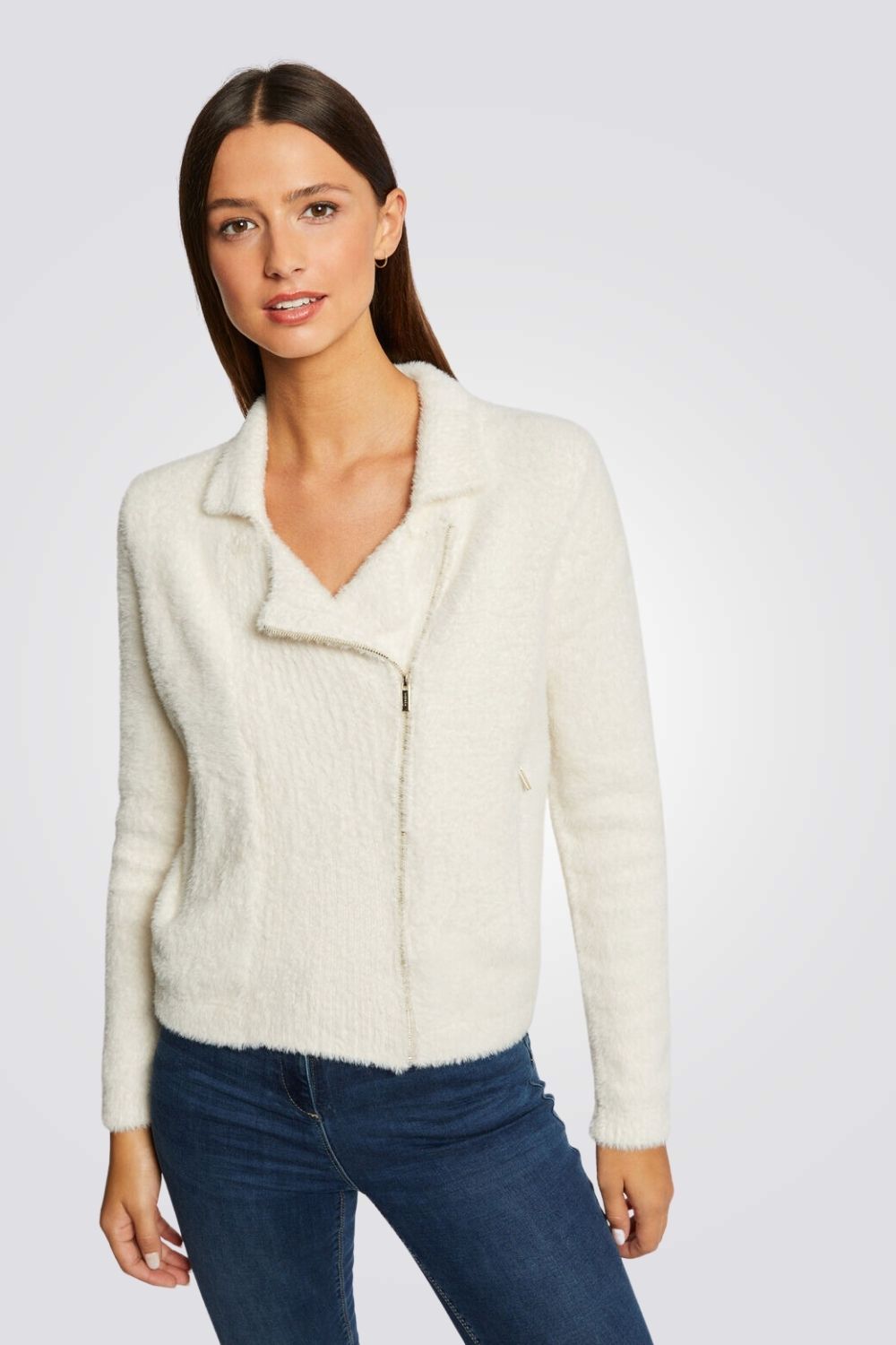 קרדיגן מבית המותג MORGAN, צבע אבן, סגירת רוכסן, צאוורון דש, גזרה ישרה ובעל שני כיסים קידמיים