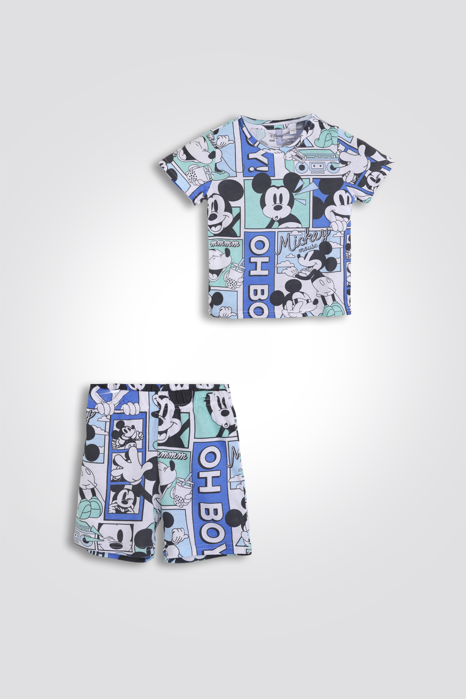 סט פיג'מת קיץ לילדים מבית המותג DELTA העשויה מבד דק ונעים עם הדפס צבעוני של מיקי מאוס. חולצה עם צווארון עגול ושרוולים קצרים ומכנסיים תואמים קצרים עם גומי במותניים.