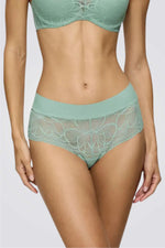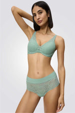 תחתונים לנשים מבית המותג TRIUMPH בגזרת שורטי בעלת קו מותניים לאסטי ובד מעטפת עשוי בד טול פרחוני חצי שקוף לנוחות מקסימלית ובלתי נראה מתחת לבגדים.