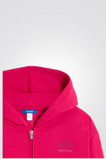 סווטשירט ילדות עם  רוכסן וקפושון בצבע ורוד