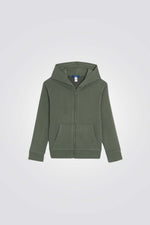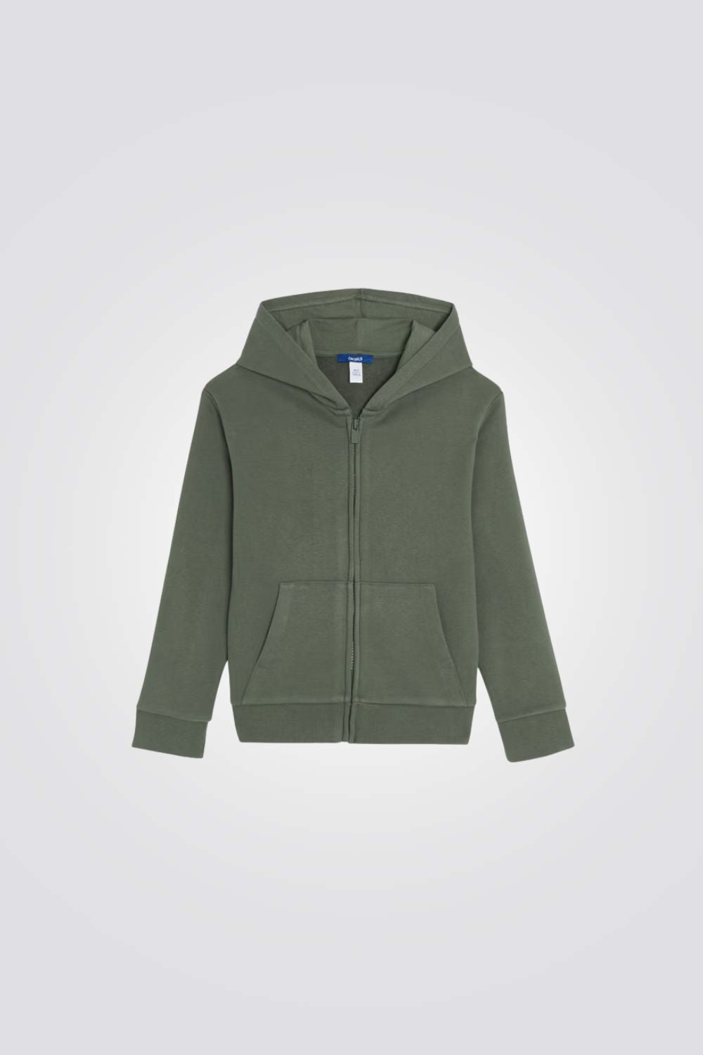 סווטשירט לילדים מבית המותג OKAIDI, בצבע ירוק זית ,עשוי מבד מחמם ונעים , סגירת רוכסן ושני כיסי קנגרו צדדיים .