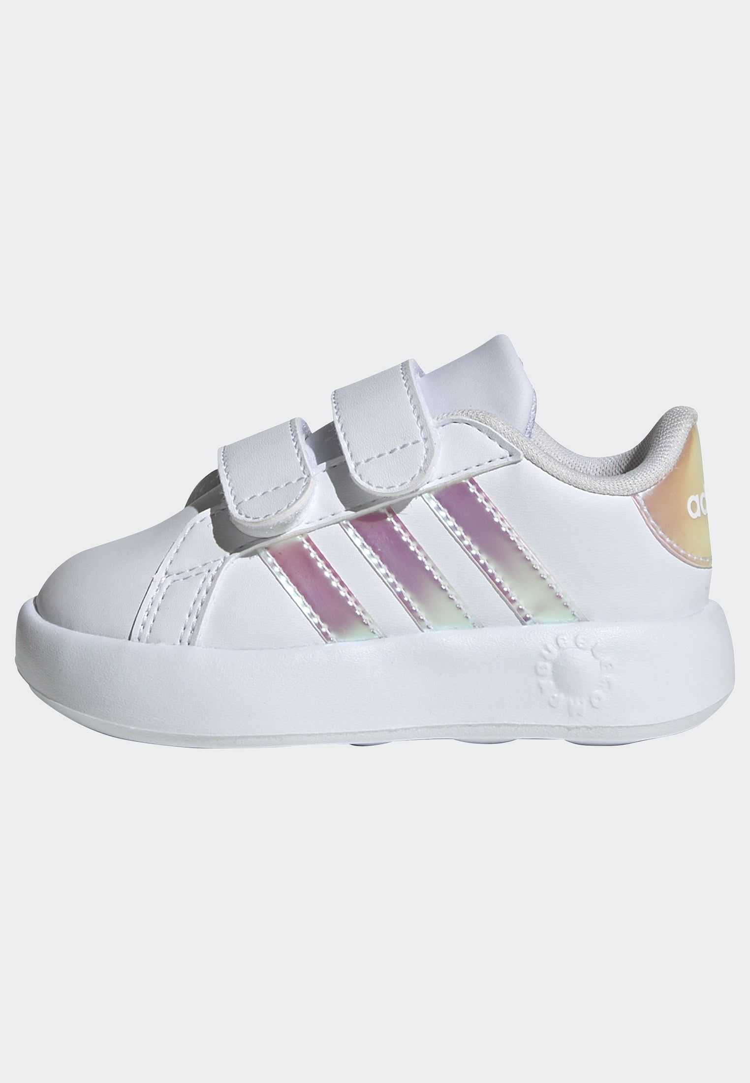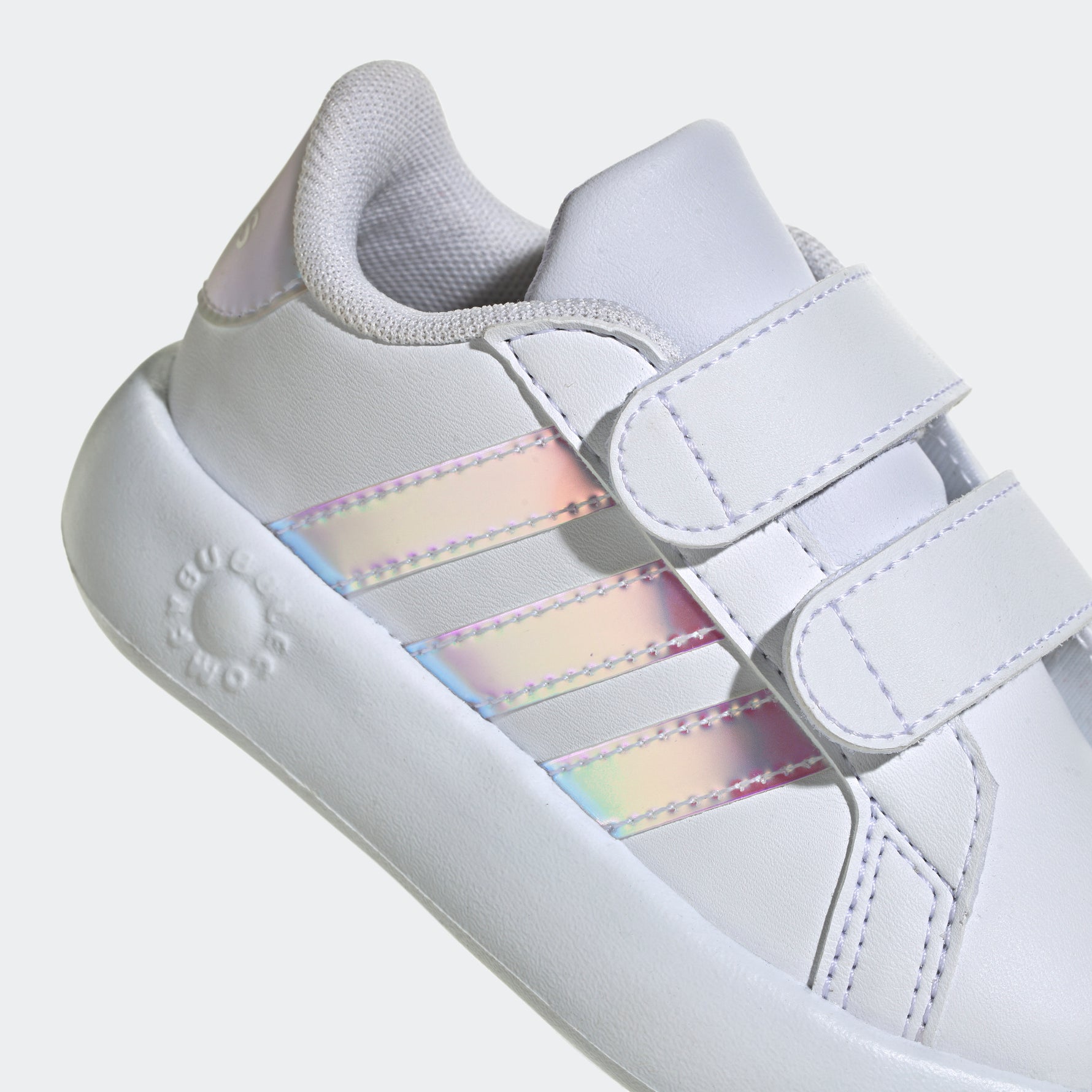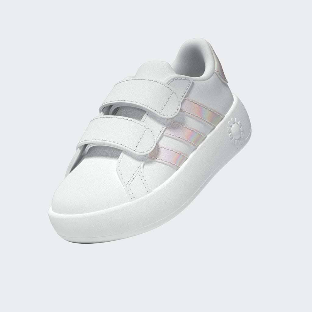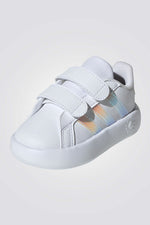 נעלי ספורט לילדים Grand Court 2.0 בצבע לבן עם פסי כסף