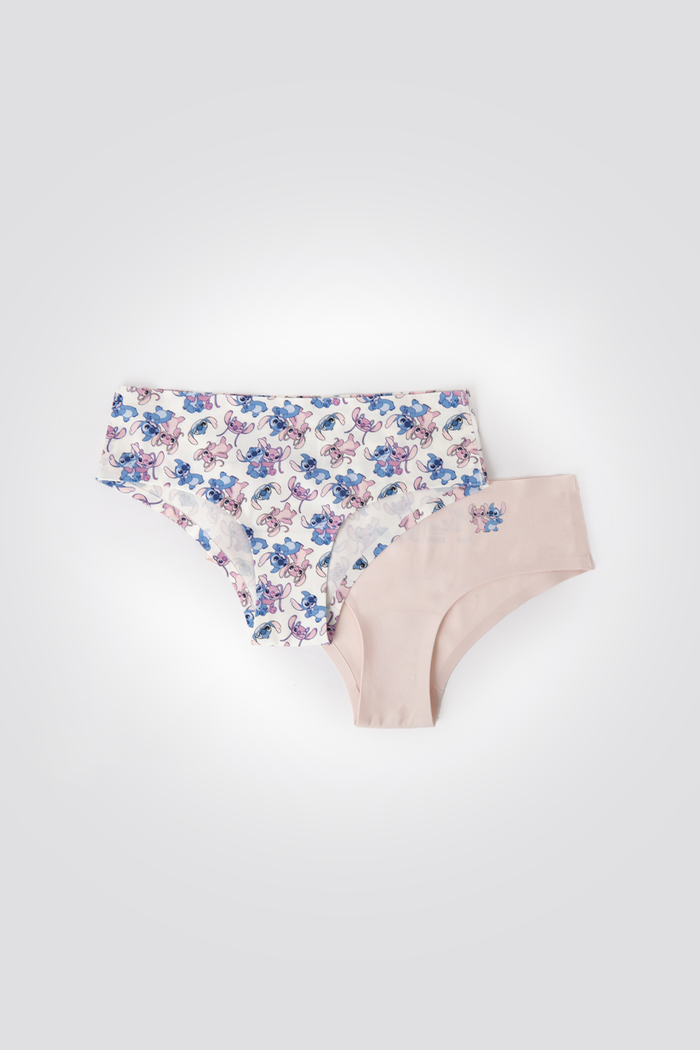 שני תחתונים בגזרת מיני סליפ לילדות מבית המותג DELTA העשויים מבד נעים ללא תפרים, בלתי נראים מתחת לבגדים בהדפסים מתוקים של סטיץ’.