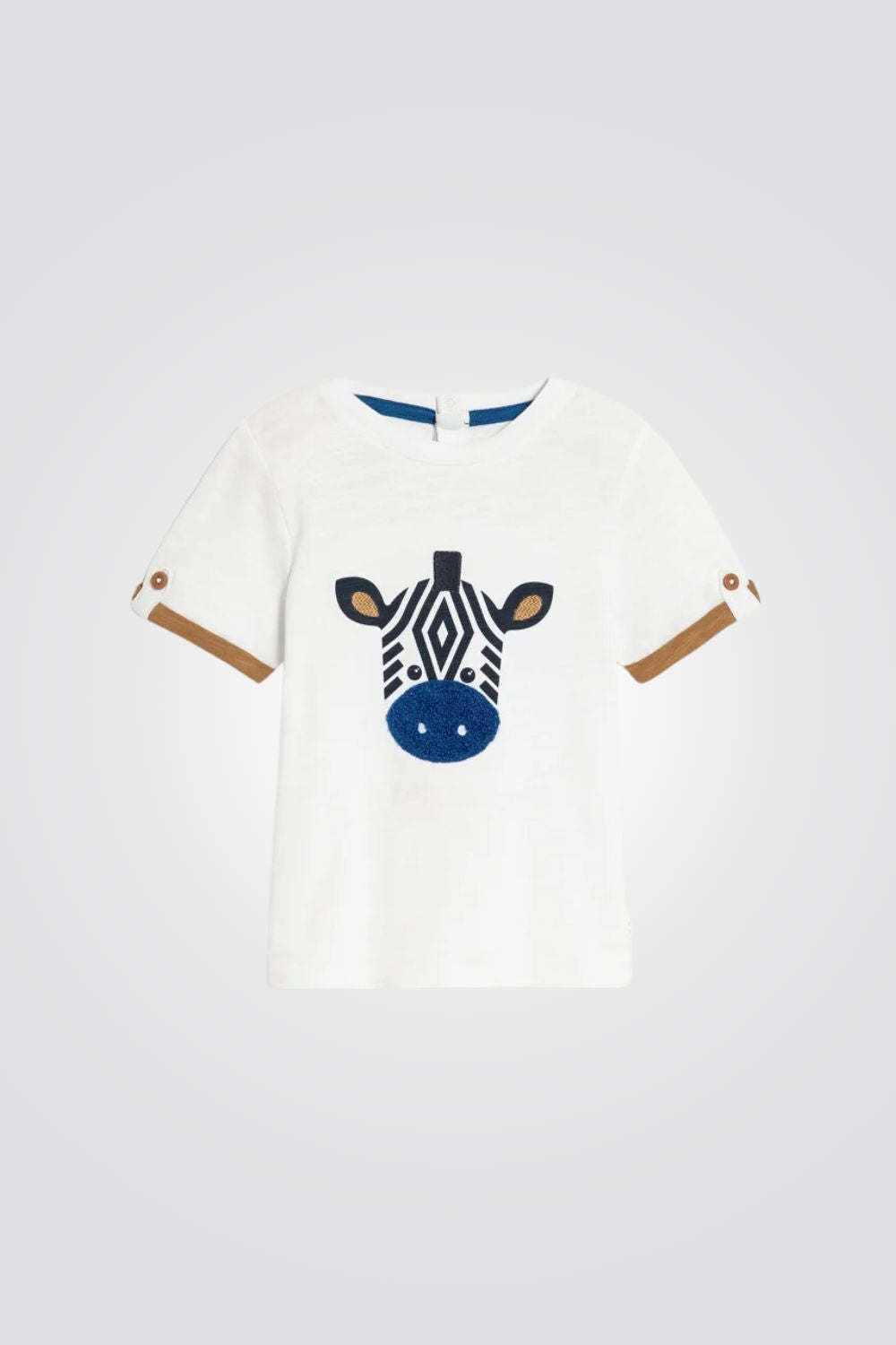 טישירט לתינוקות בצבע לבן עם הדפס זברה