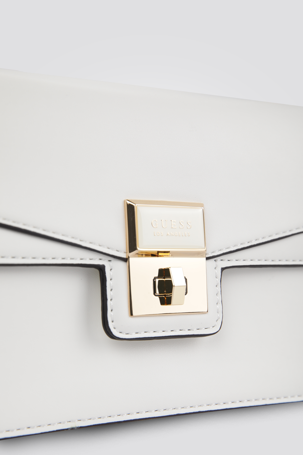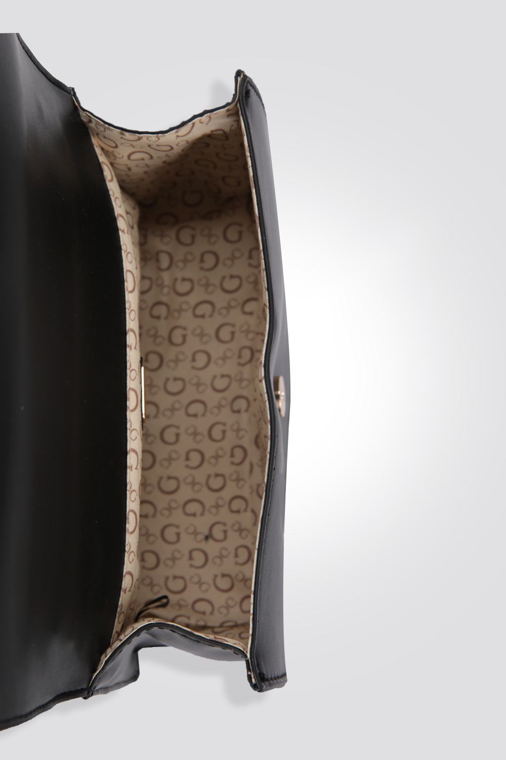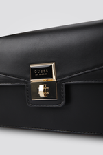 תיק צד לנשים מבית המותג GUESS, עם תא אחד גדול ומרווח וסגירת כפתור, רצועת צד ולוגו.