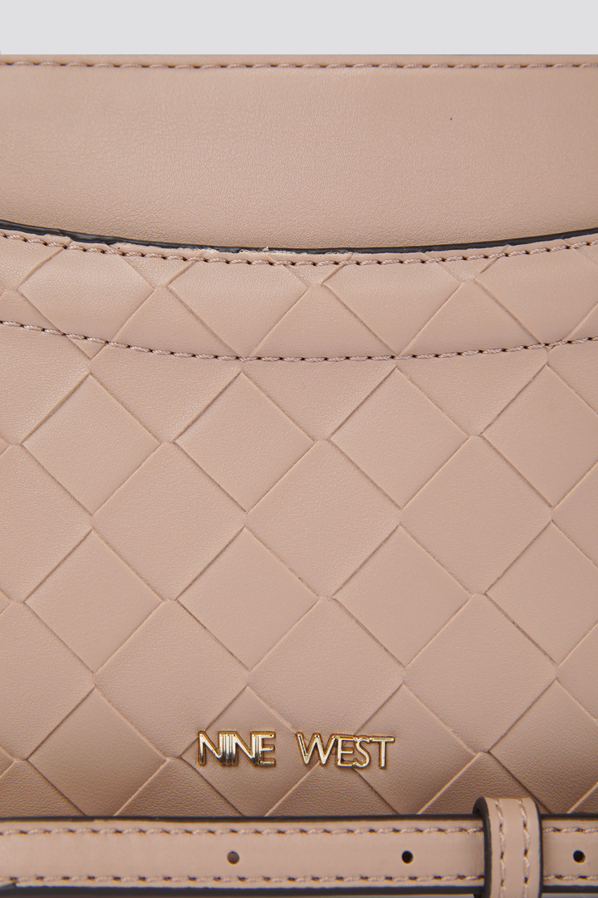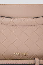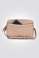 תיק צד בצבע ורוד עם לוגו בצבע זהב