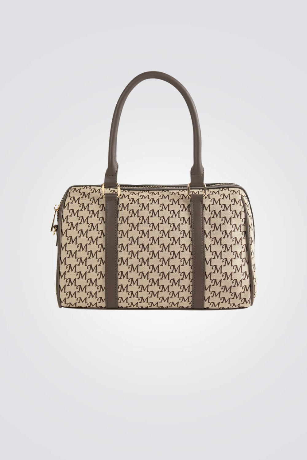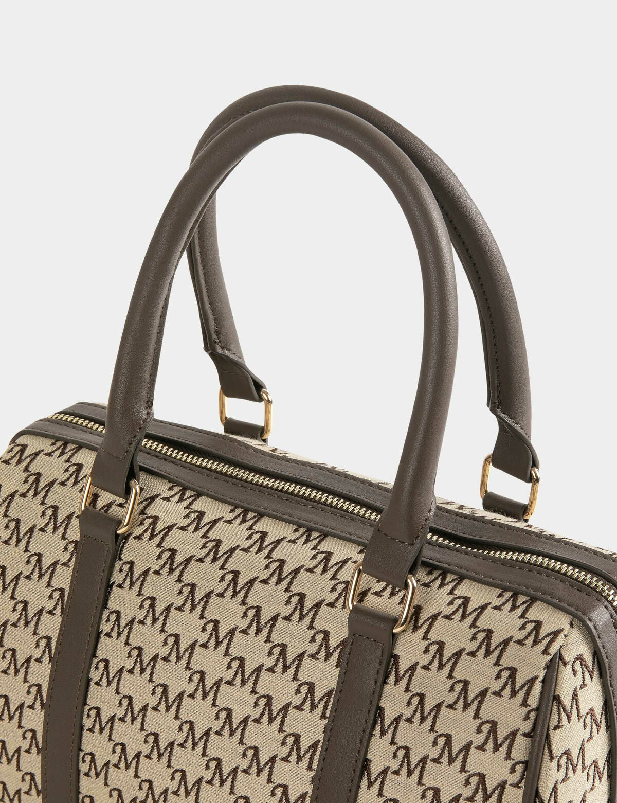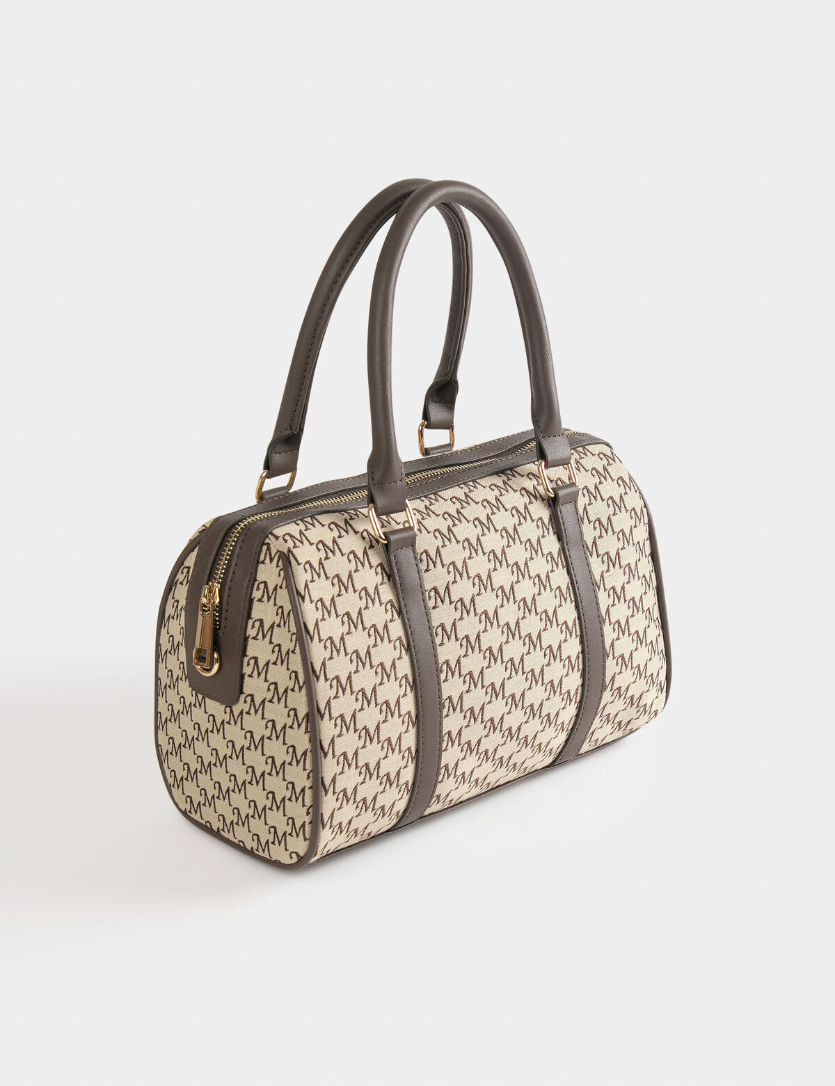 תיק מבית המותג MORGAN, תיק באולר עם הדפס מונוגרמה תיק באולר רצועה נשלפת ידיות הידוק רוכסן בחלק העליון הדפס מונוגרמה