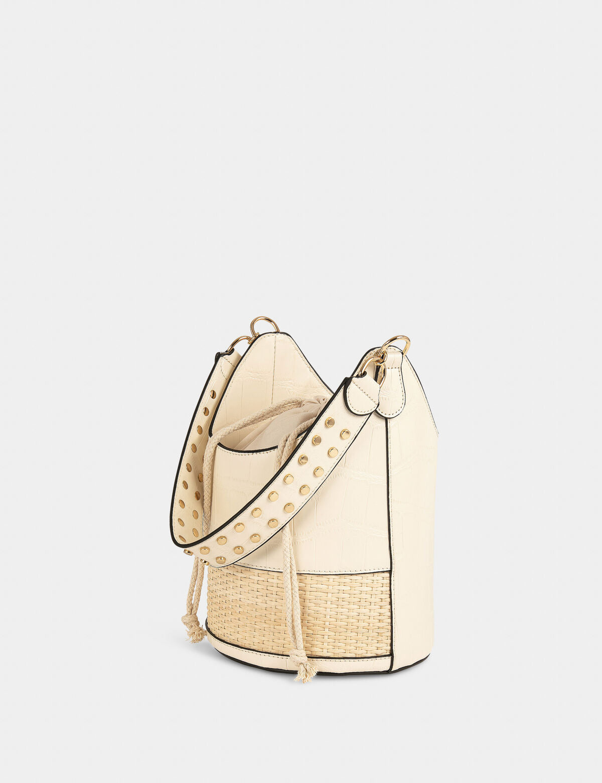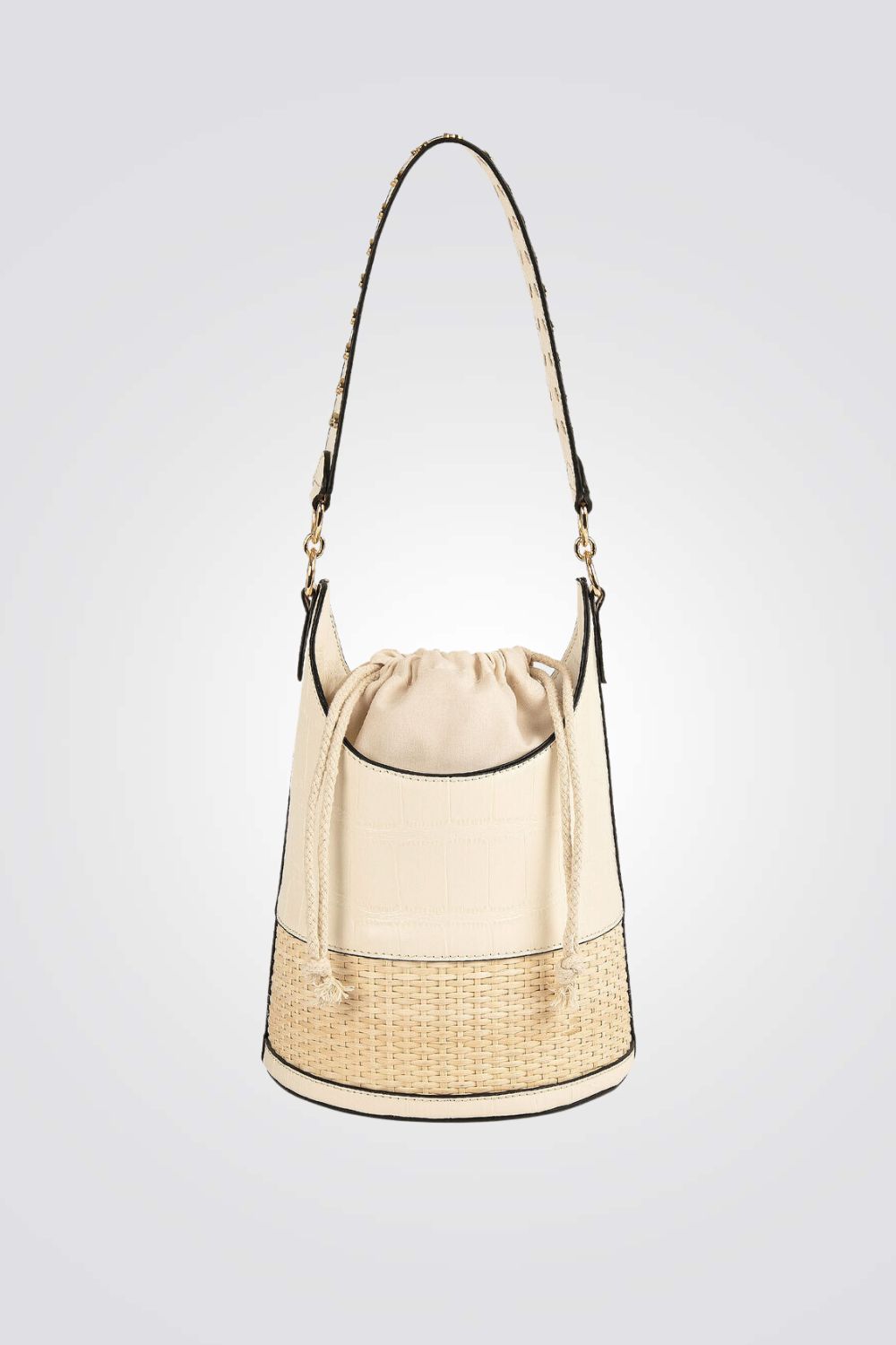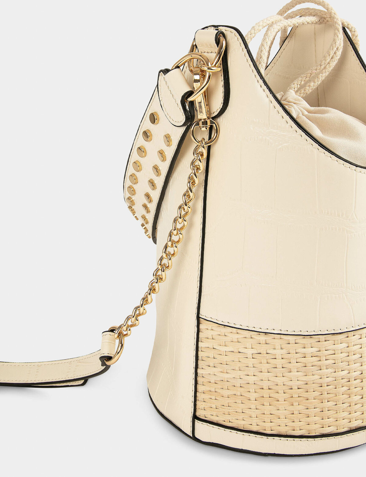 תיק דלי עם אפקט צמה בצבע בז'