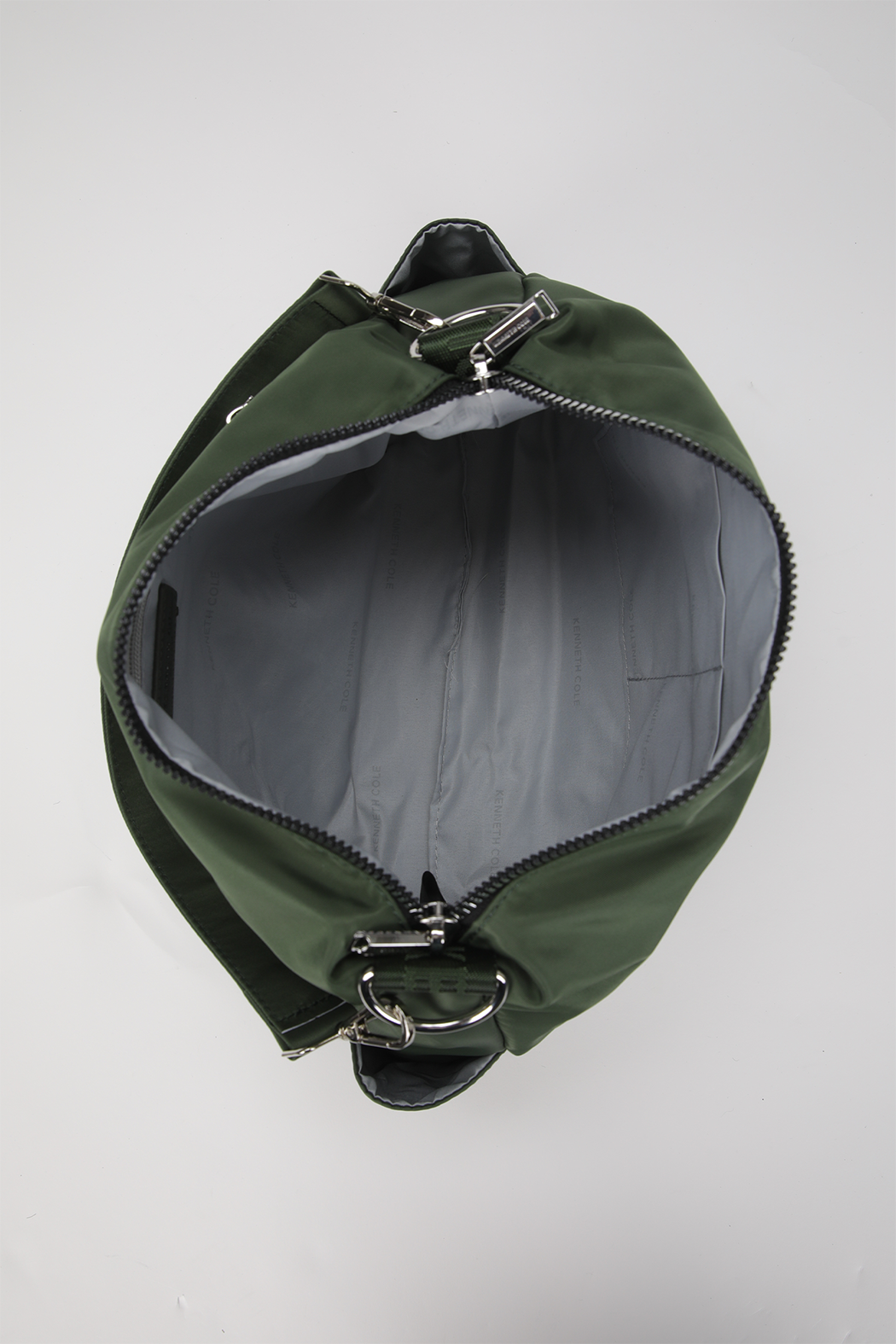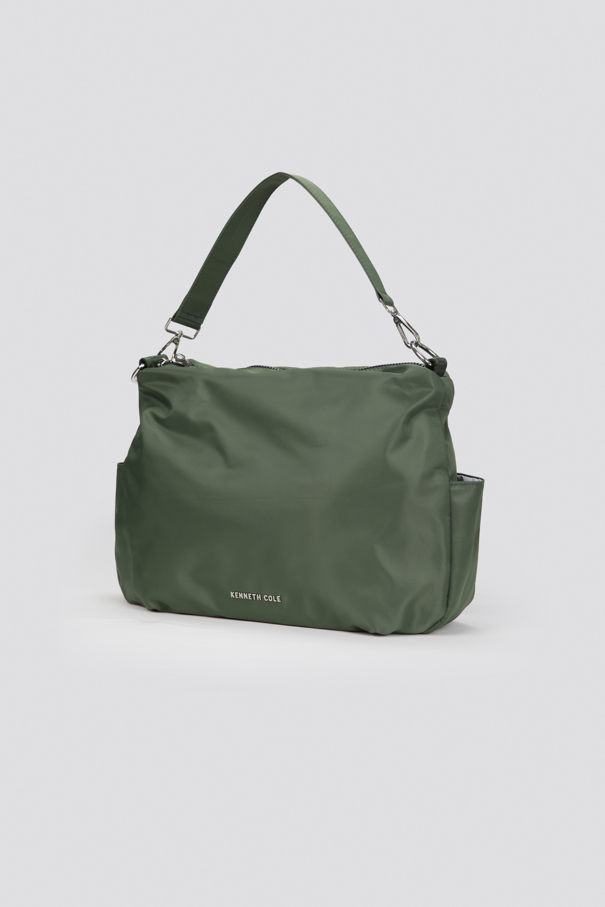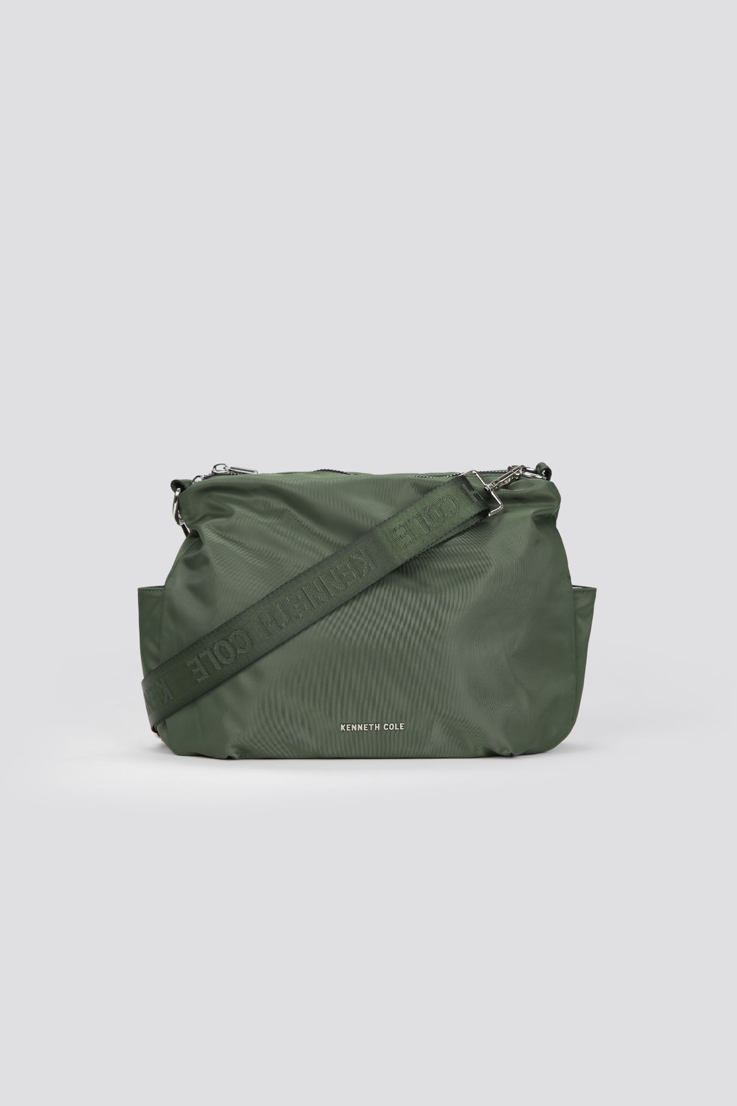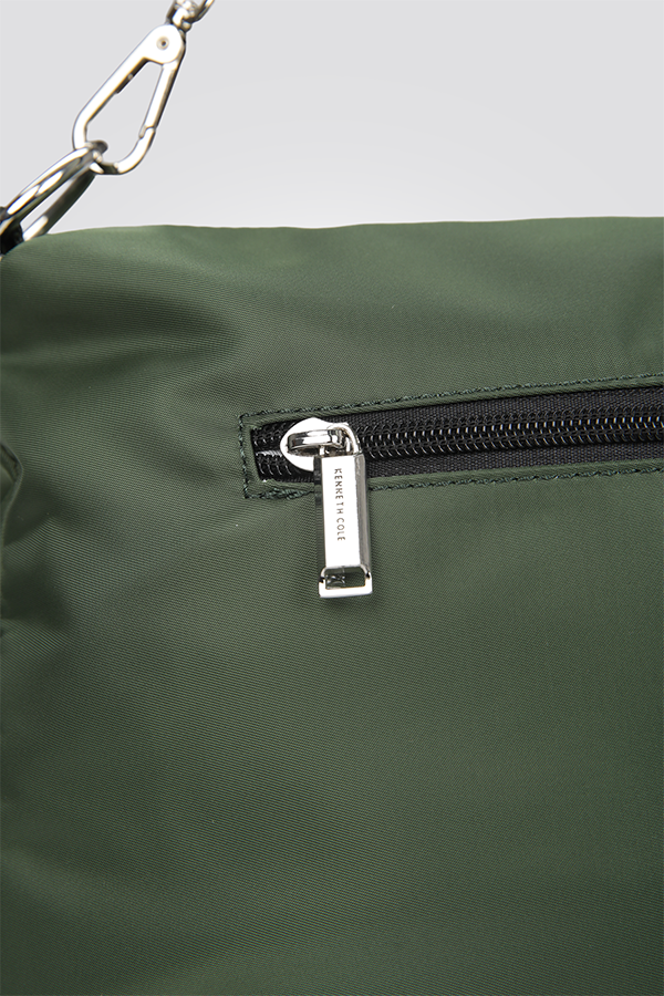 תיק צד מבית המותג KENNETH COLE לנשים בצבעים שחור, ירוק ומוקה.