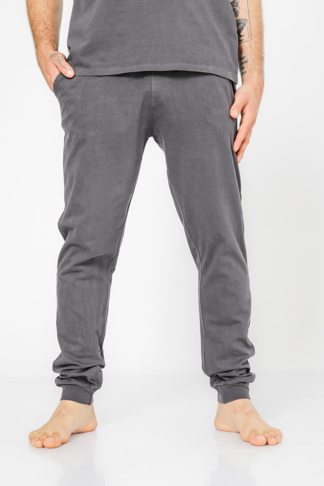 סט פיג'מה מבית מותג DELTA, עשוי מבד קליל ונעים בצבע אפור, חולצה עם צאוורון עגול ושרוולים קצרים, מכנסיים ארוכים גומי במותניים ושרוכי קשירה.
