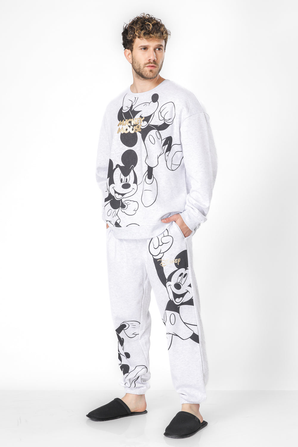 סט פיג’מה לגברים מבית המותג DELTA העשויה מבד פוטר רך ומחמם עם הדפסים של מיקי מאוס. הסר מורכב מחולצה עם צווארון עגול ושרוולים ארוכים עם סיומת מנג’ט ומכנסיים ארוכים עם גומי במותניים, כיסים וסיומת מנג’ט.
