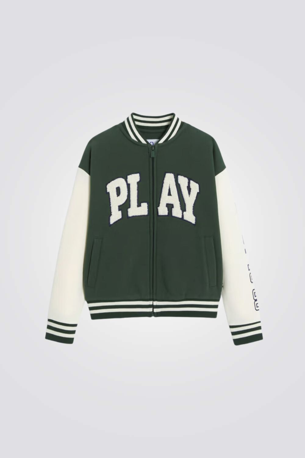 ג'קט לילדים מבית המותג OKAIDI, בצבע ירוק מחמם ונעים בסגנון בייסבול , צווארון עגול ,סגירת רוכסן ושני כיסים צדדיים.