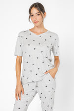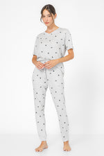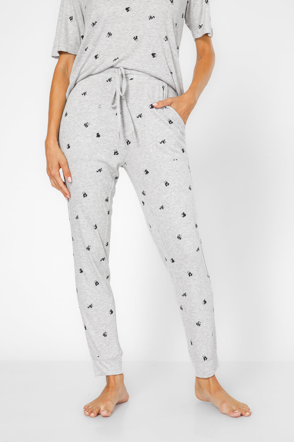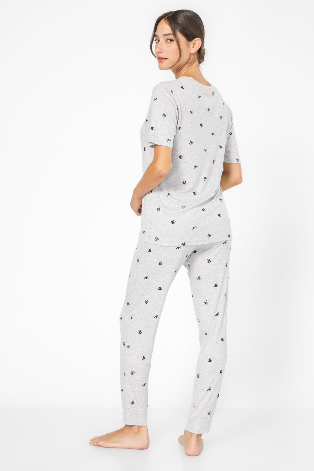 סט פיג’מה מבית המותג DELTA, עשויה מבד מודל בשילוב טקסטורת ריב נעימה בהדפסים מתוקים של פנדה. חולצה עם מפתח צוואר עגול ושרוולים קצרים, ומכנסיים באורך 7/8 עם גומי במותניים, שרוכי קשירה וסיומת מנג’ט.
