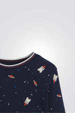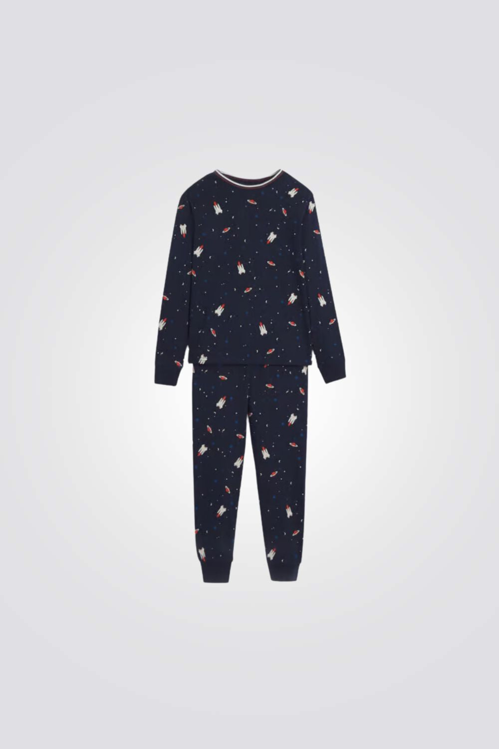 סט פיג'מה לילדים בצבע נייבי עם הדפס חלליות