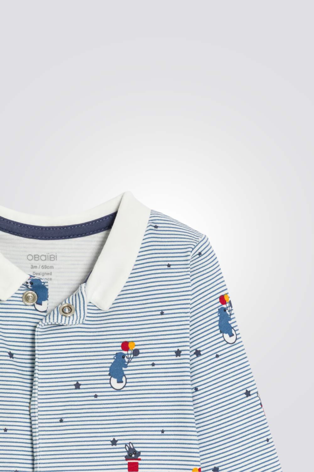 אוברול פיג'מה לתינוקות מבית המותג OBAIBI, רך ונעים, עם שרוולים ארוכים וסגירת תיקתק.