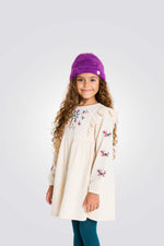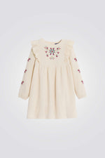 שמלה לילדות בצבע שמנת עם עיטורי רקמה