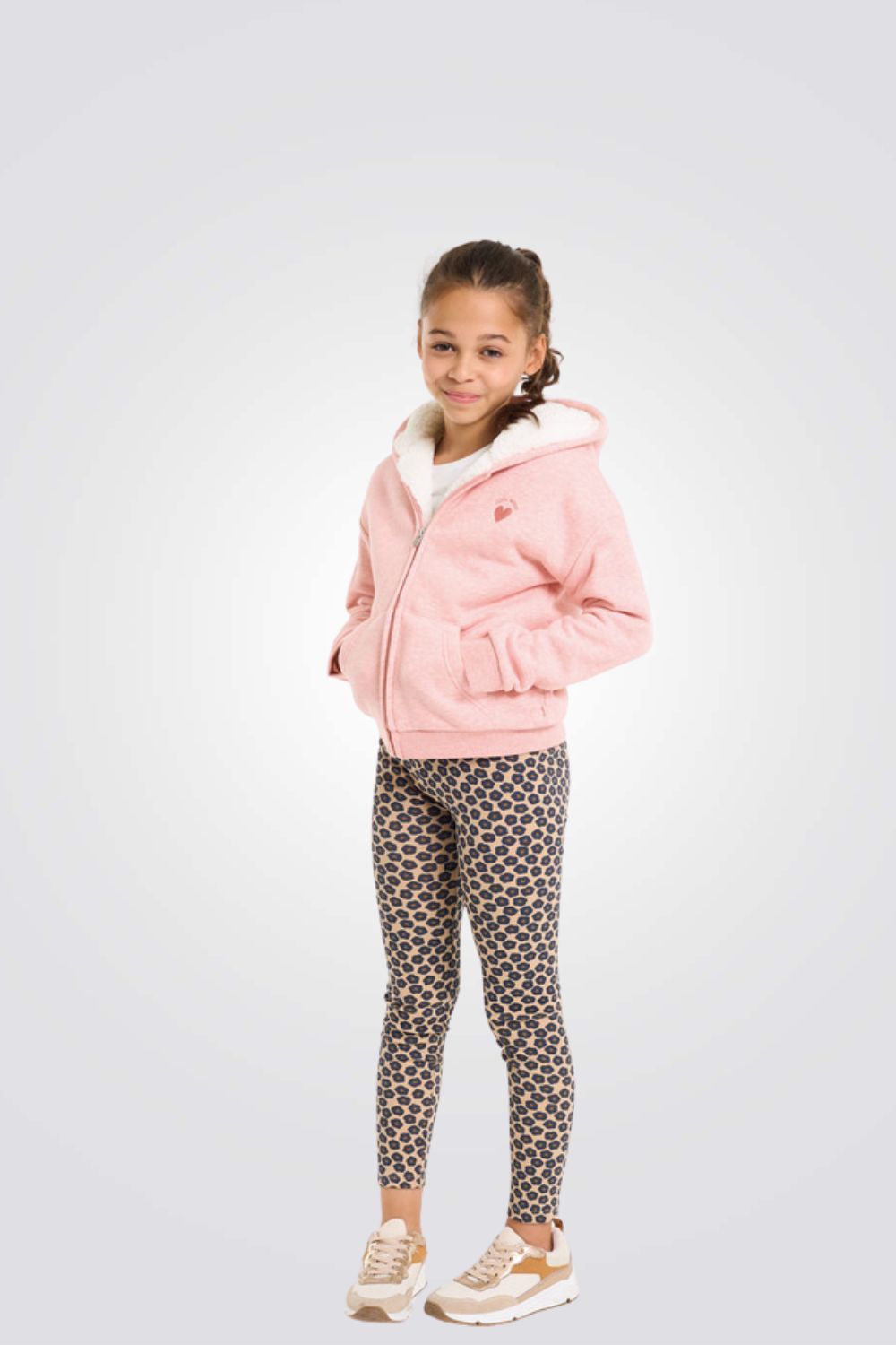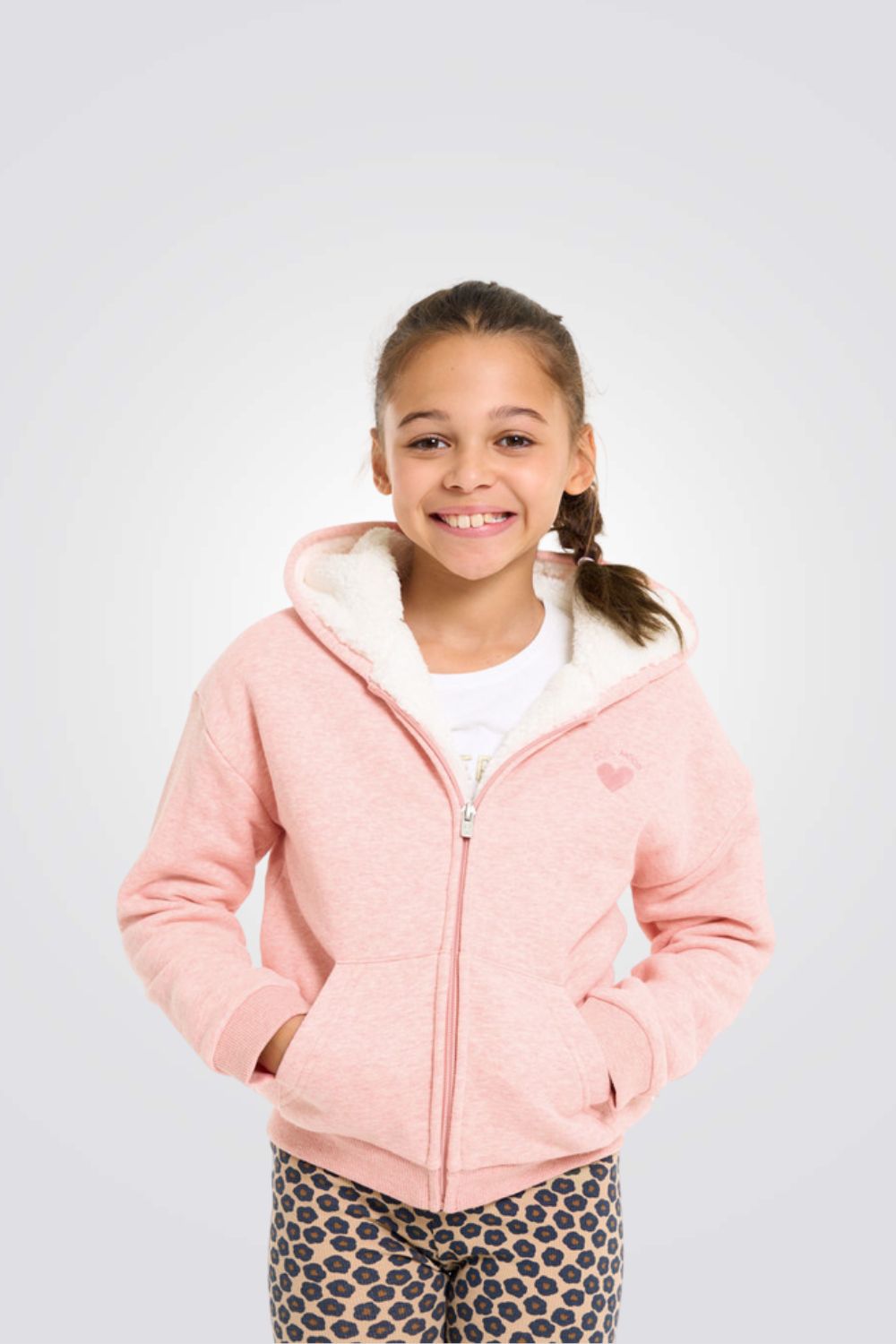 סווטשירט עם קפוצ'ון לילדות בצבע ורוד עם רוכסן