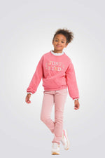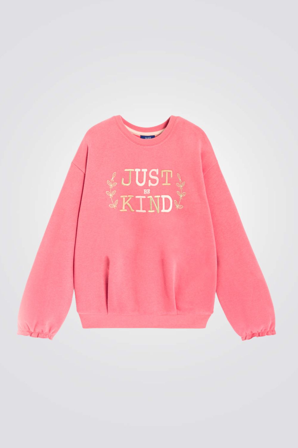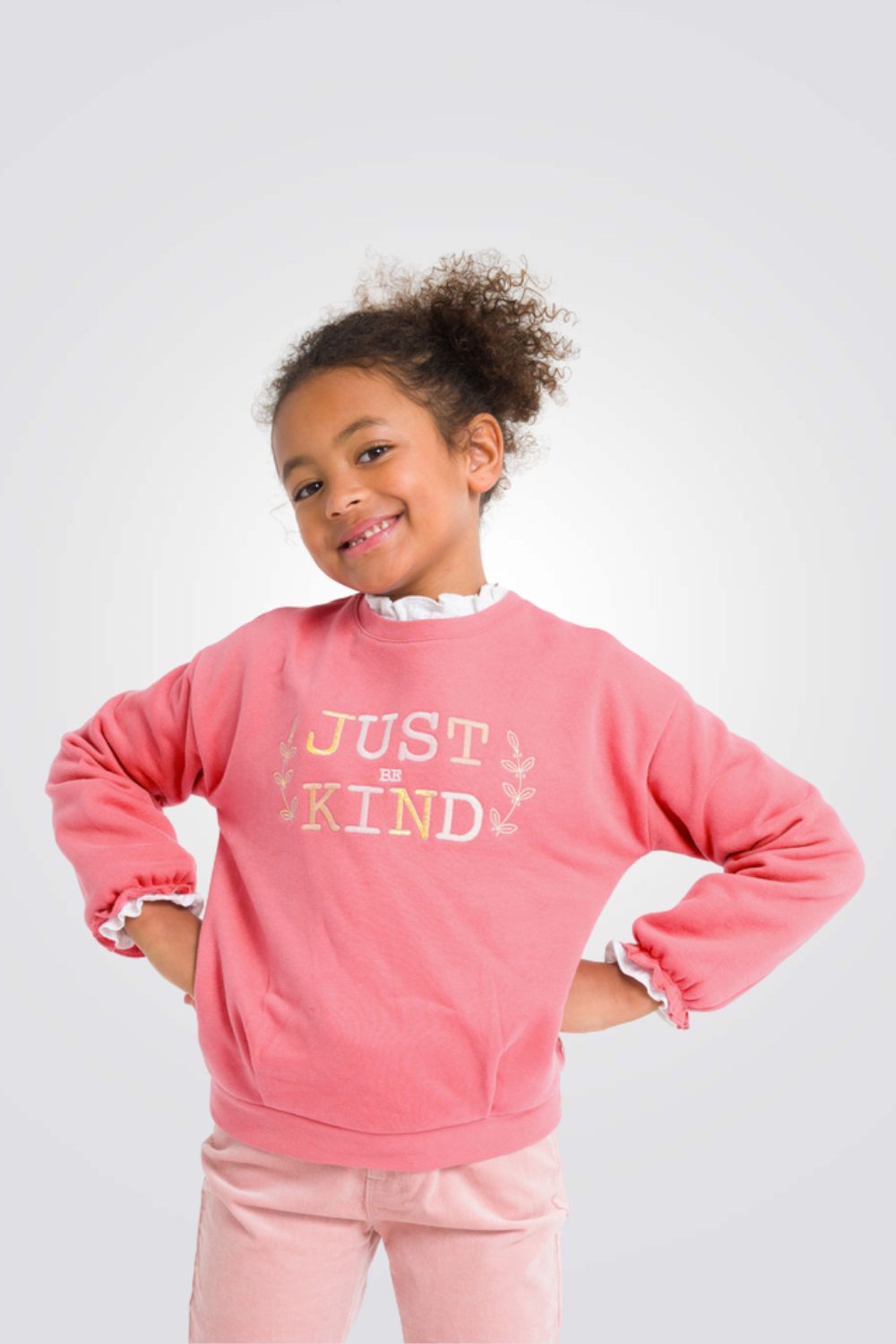 סווטשירט לילדות בצבע ורוד עם כיתוב