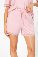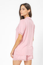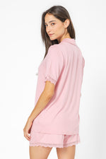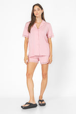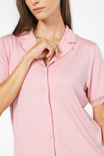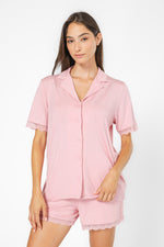 סט פיג’מה קצרה מכופתרת מודל בצבע ורוד