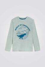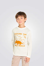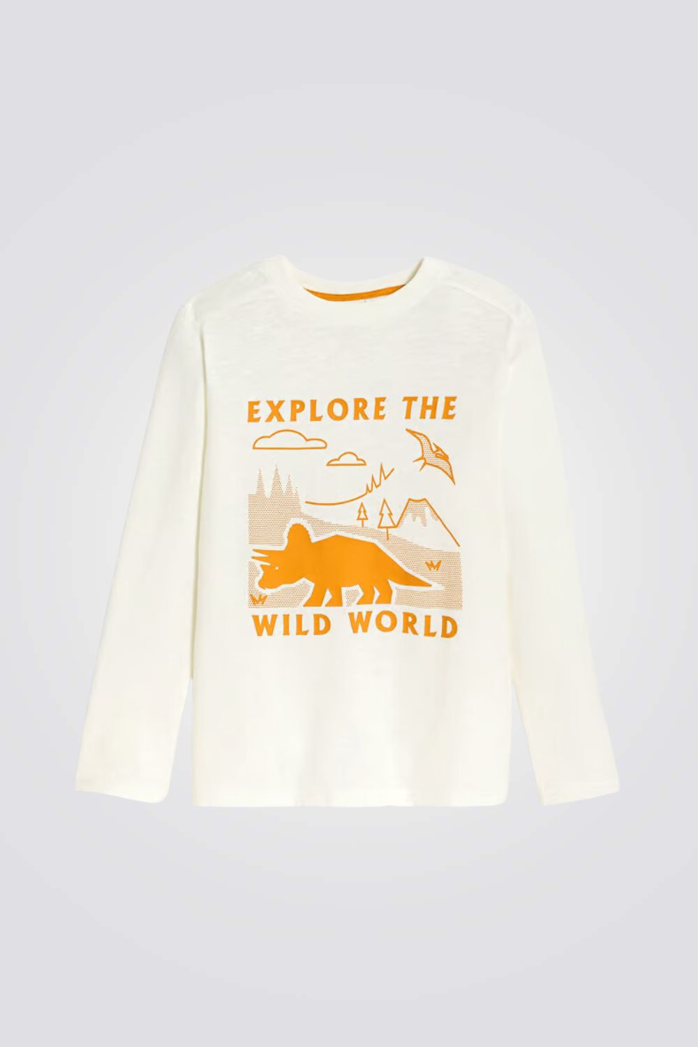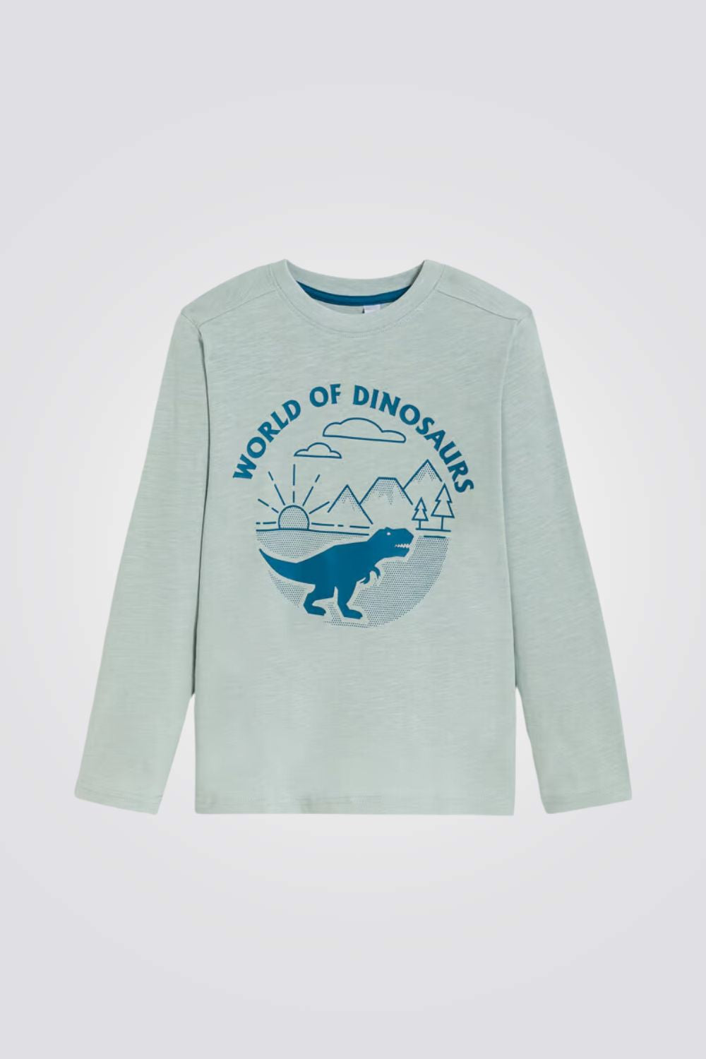 טישירט לילדים מבית המותג OKAIDI, עם שרוולים ארוכים וצווארון עגול, עשויה מבד קליל ונעים.