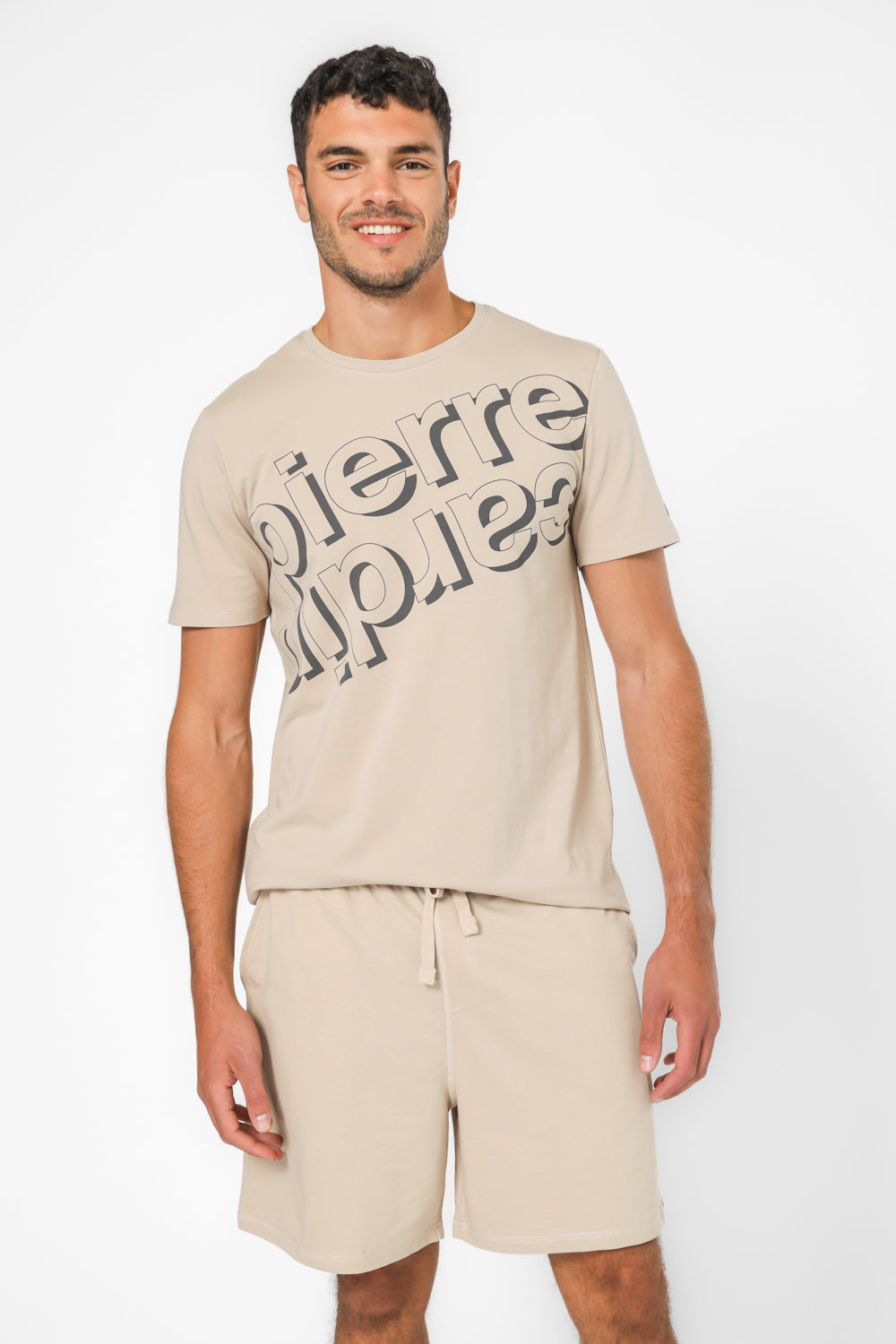 סט מבד פרנץ’ טרי נעים עם הדפס הלוגו של PIERRE CARDIN.