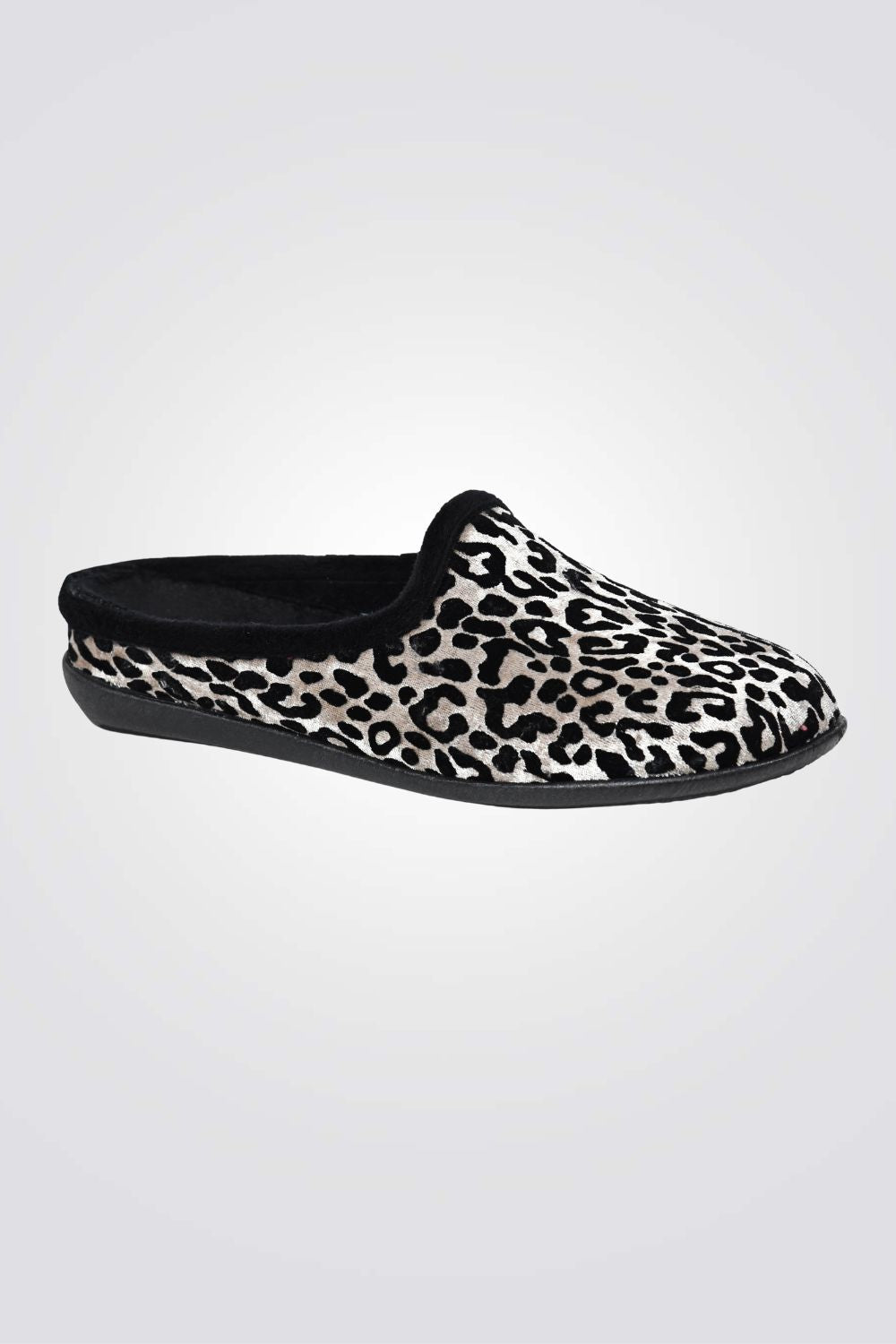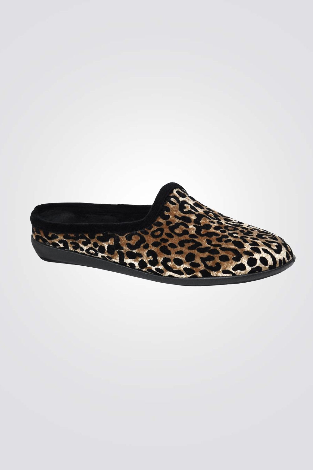 נעלי בית מבית המותג LADY COMFORT בהדפס מנומר חמימות ונוחות.