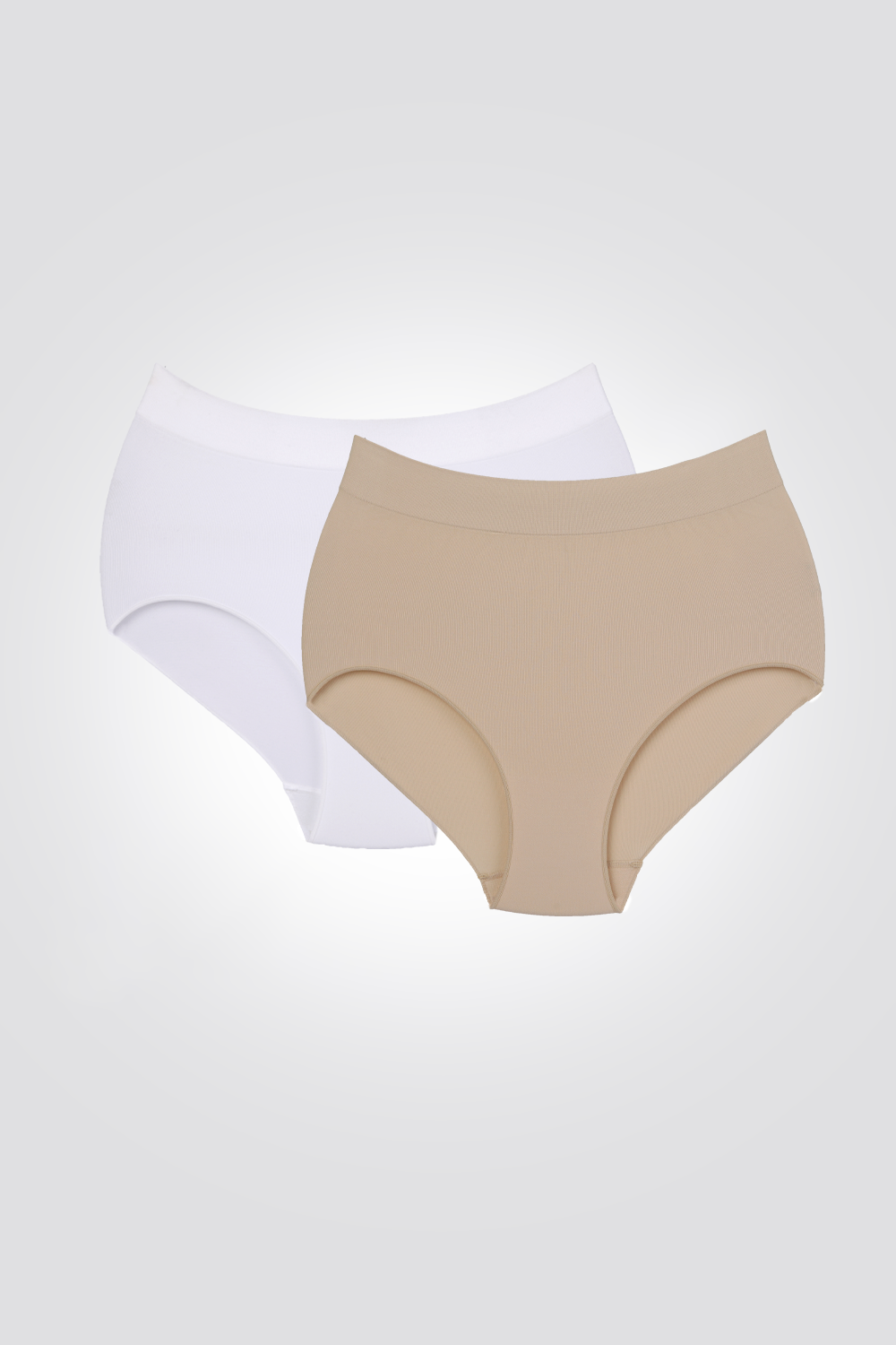 זוג תחתוני מיקרו בגיזרת מקסי בצבעים לבן וניוד. הלבשה תחתונה רכה ועוטפת , מתאימה עצמה לגוף באופן מושלם ללא הפעלת לחץ מיותר. המוצרים מבוססי טכנולוגיית אל תפר, עם מותן סרוגה כחלק אינטגרלי מהמוצר, לנוחות מקסימאלית .בד מיקרופייבר נושם ומנדף, אידאלי לאקלים הישראלי. בלתי נראה, בלתי מורגש.