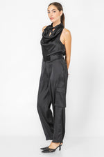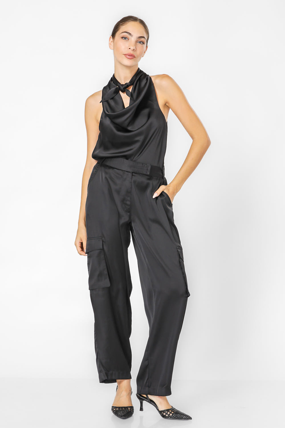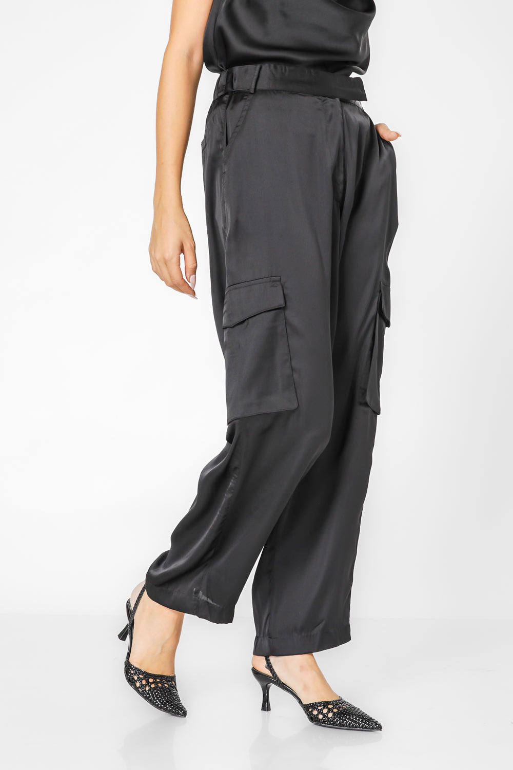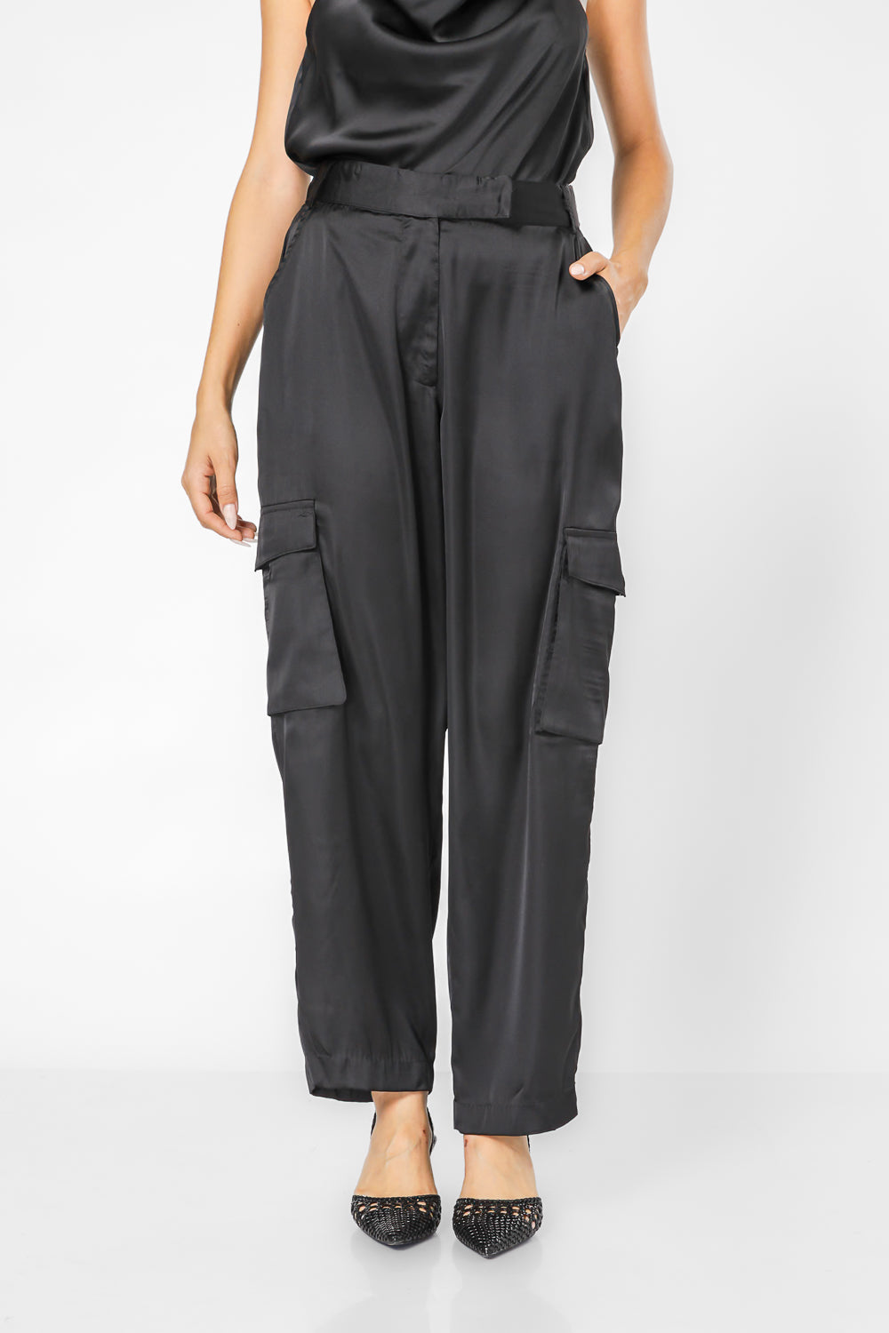 מכנס דגמ"ח במראה סאטן מבית המותג היוקרתי KENNETH COLE, מותן בגובה קלאסי סגירת רוכסן עם כפתור.