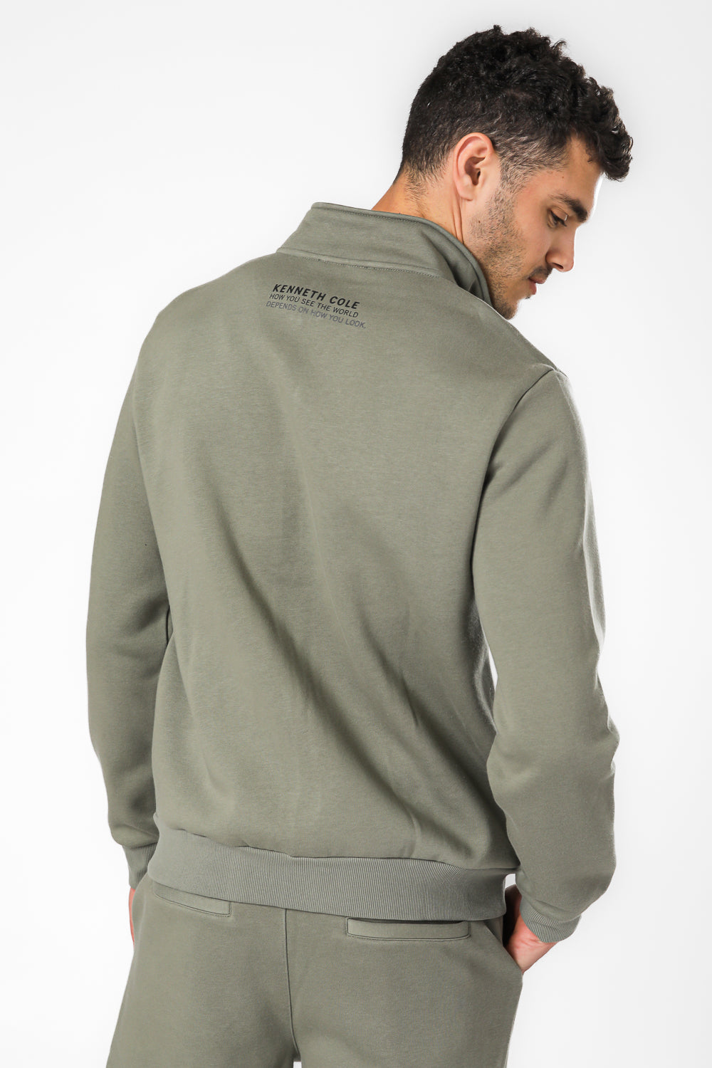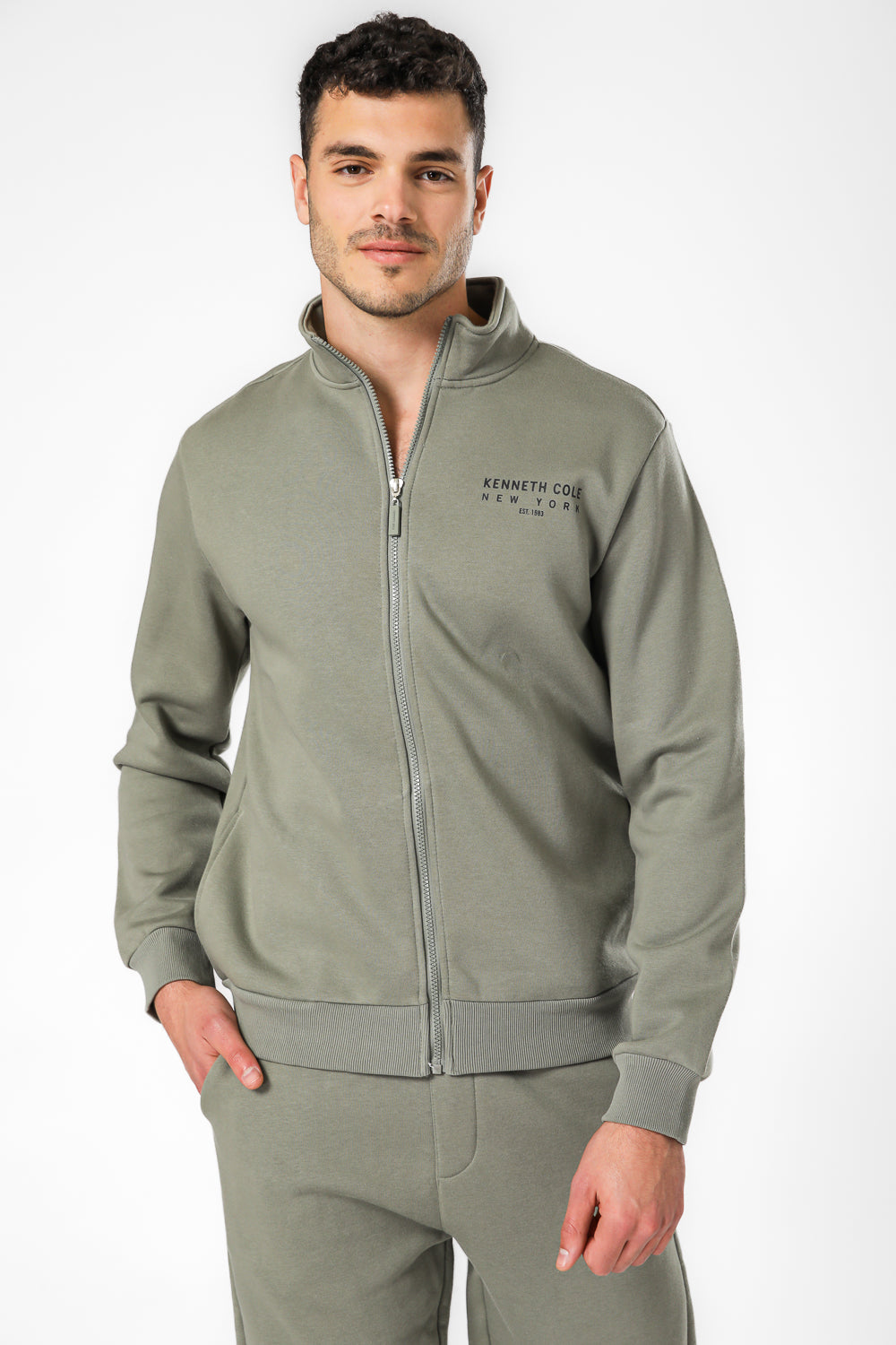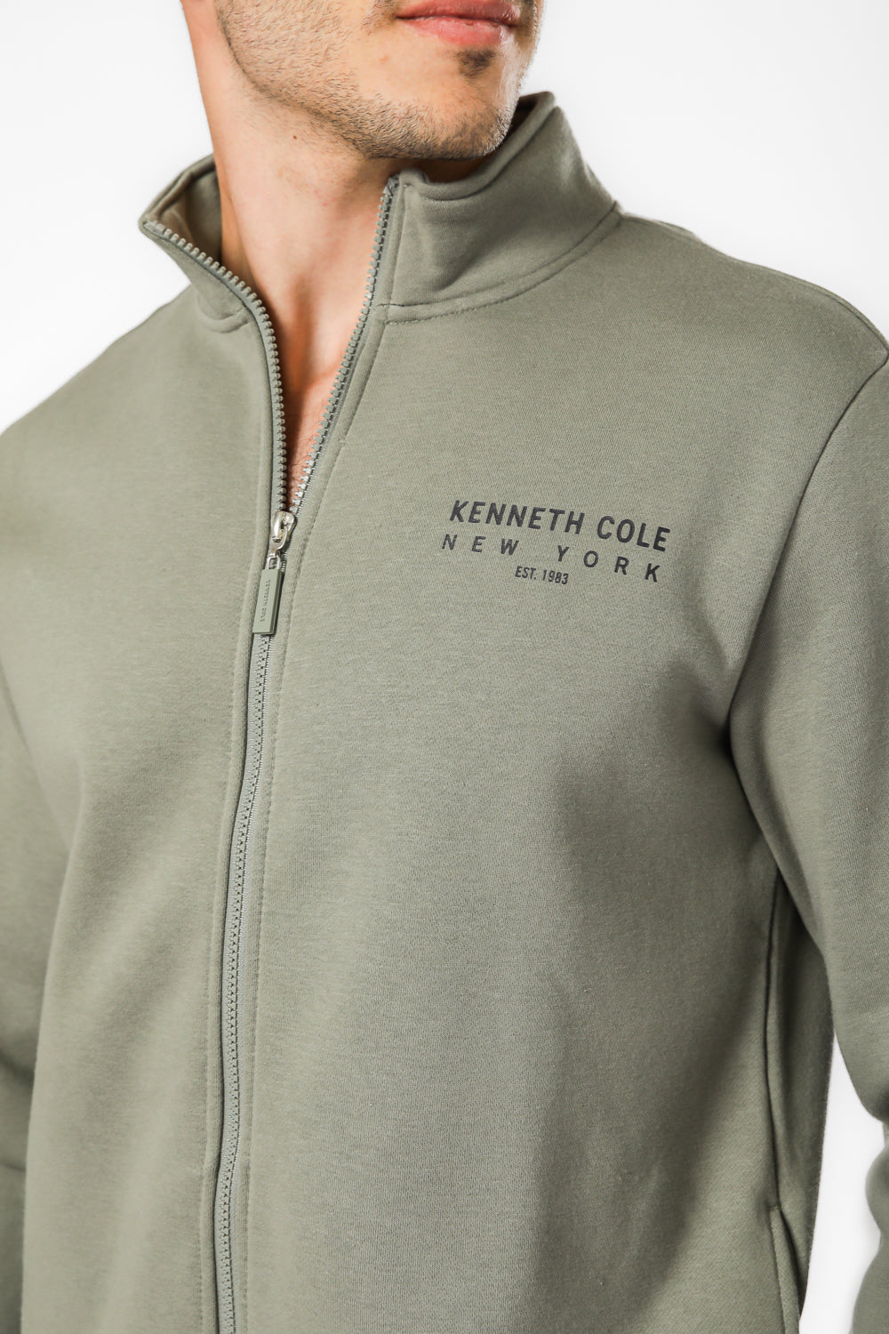 סווטשירט לגברים מבית המותג KENNETH COLE עם הדפס לוגו בגב ובחזית, בעל צווארון גולף, כיסים צדדיים וסגירת רוכסן.
