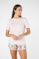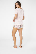 סט פיג'מה ורודה פרחונית קצרה