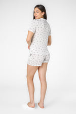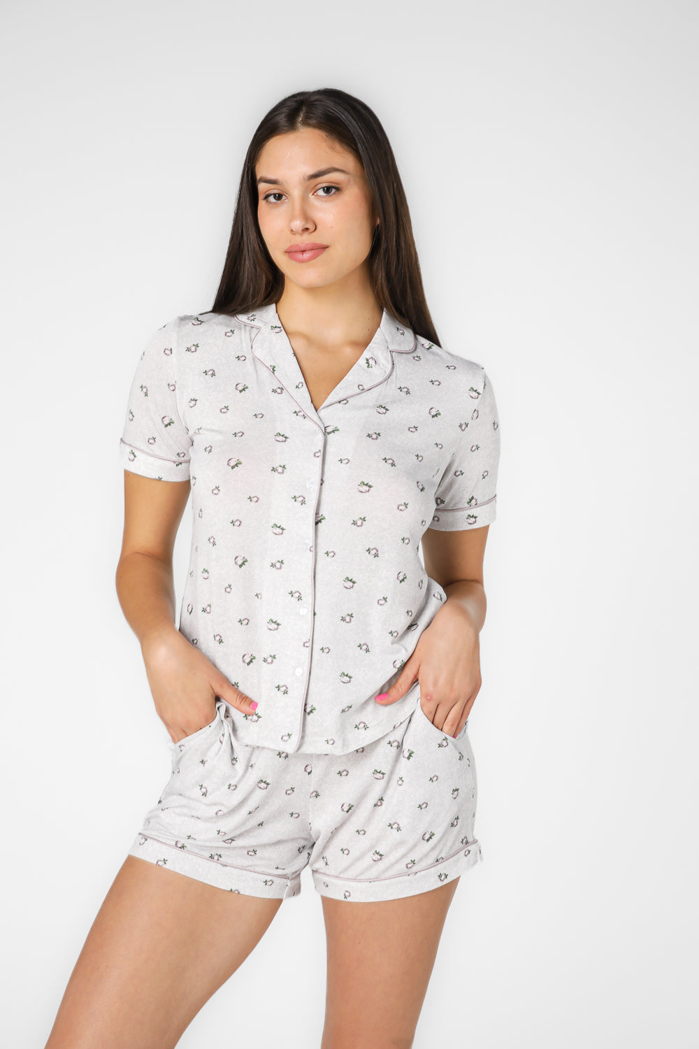 סט פיג’מה מכופתרת קצרה בהדפס פרחוני