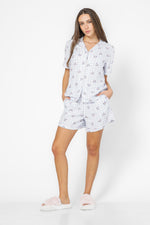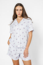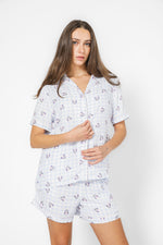 סט פיג'מה קצרה מבית המותג DELTA העשויה מבד אריג נעים עם הדפסים של מיני מאוס. חולצה מכופתרת עם צווארון משולשים ושרוולים קצרים, ומכנסיים קצרים עם גומי במותניים, שרוכי קשירה וכיסים.