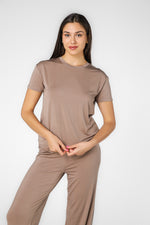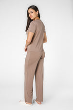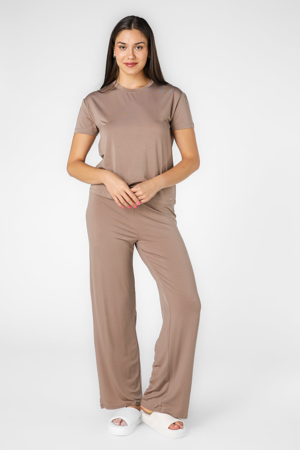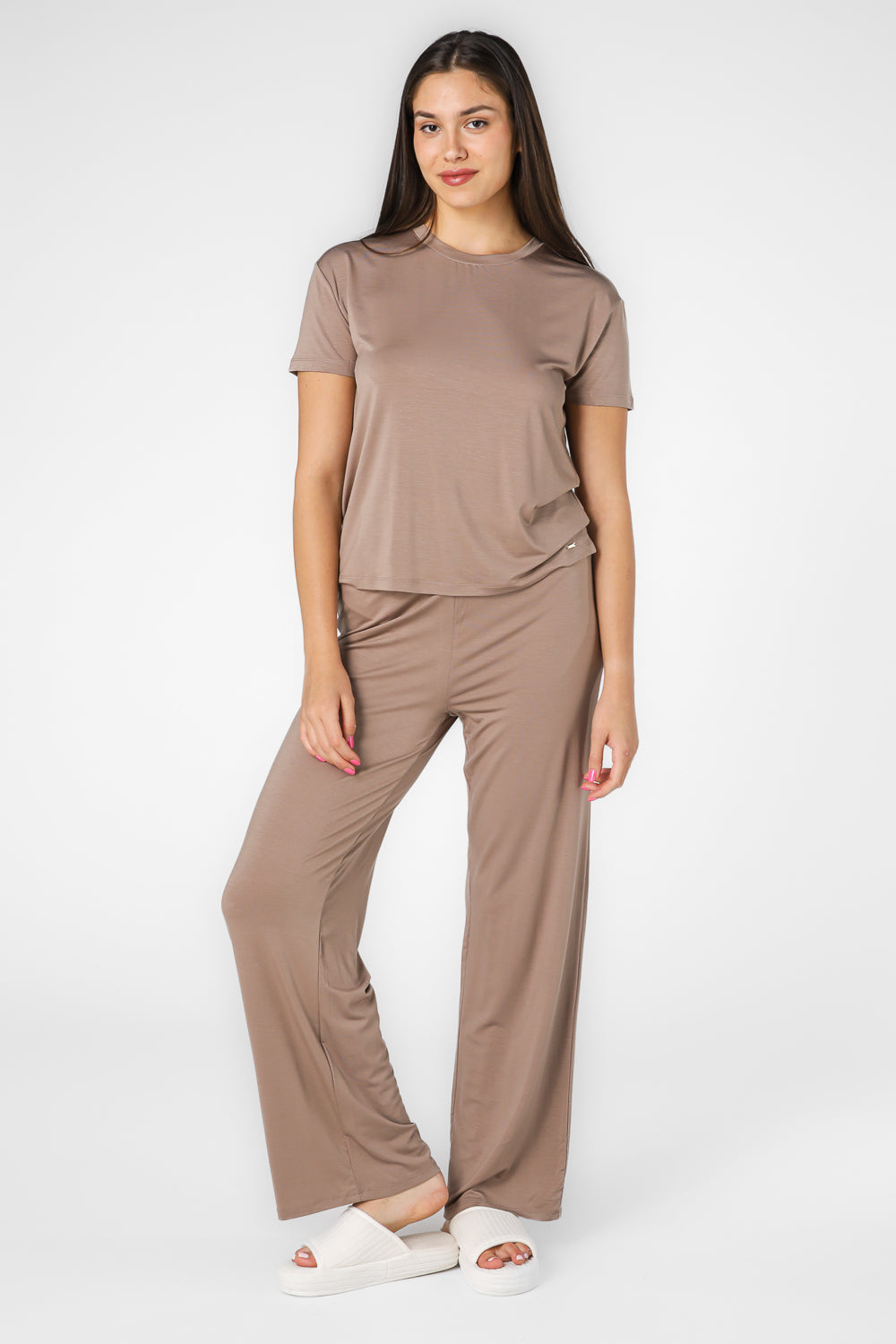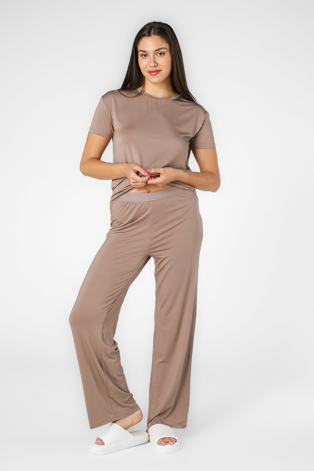פיג'מה דקה לנשים מבית המותג DELTA בעלת גזרה נינוחה מבד רך ונעים הכולל חולצה עם צווארון עגול ושרוולים קצרים ומכנסיים ארוכים תואמים עם גומי במותניים.