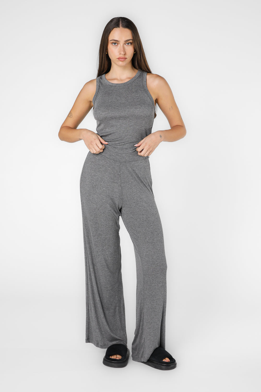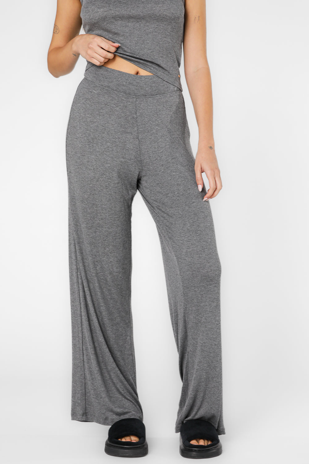 סט פיג'מת מעבר ריב גופיה בצבע אפור