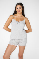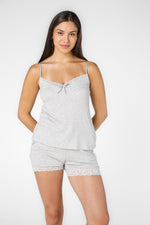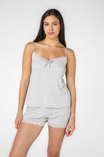 סט פיג'מת קיץ מבית המותג DELTA העשויה מבד דק ונעים הכולל גופיה בגזרה משוחררת עם כתפיות דקות, צווארון וי וסיומת תחרה ומכנסיים קצרים תואמים עם גומי במותניים ושרוכי קשירה, כיסים וסיומת תחרה.