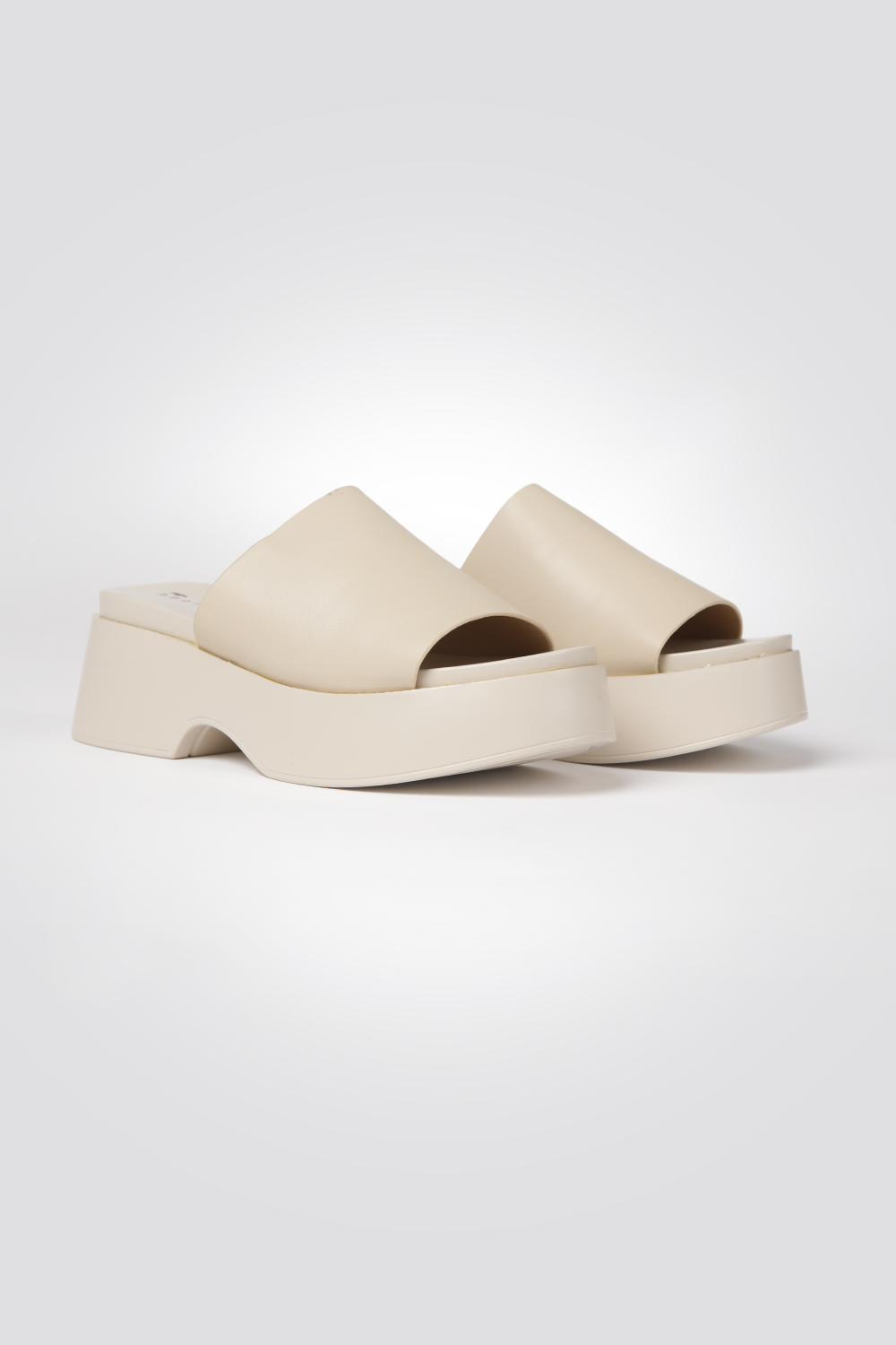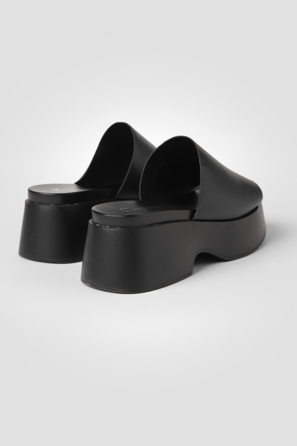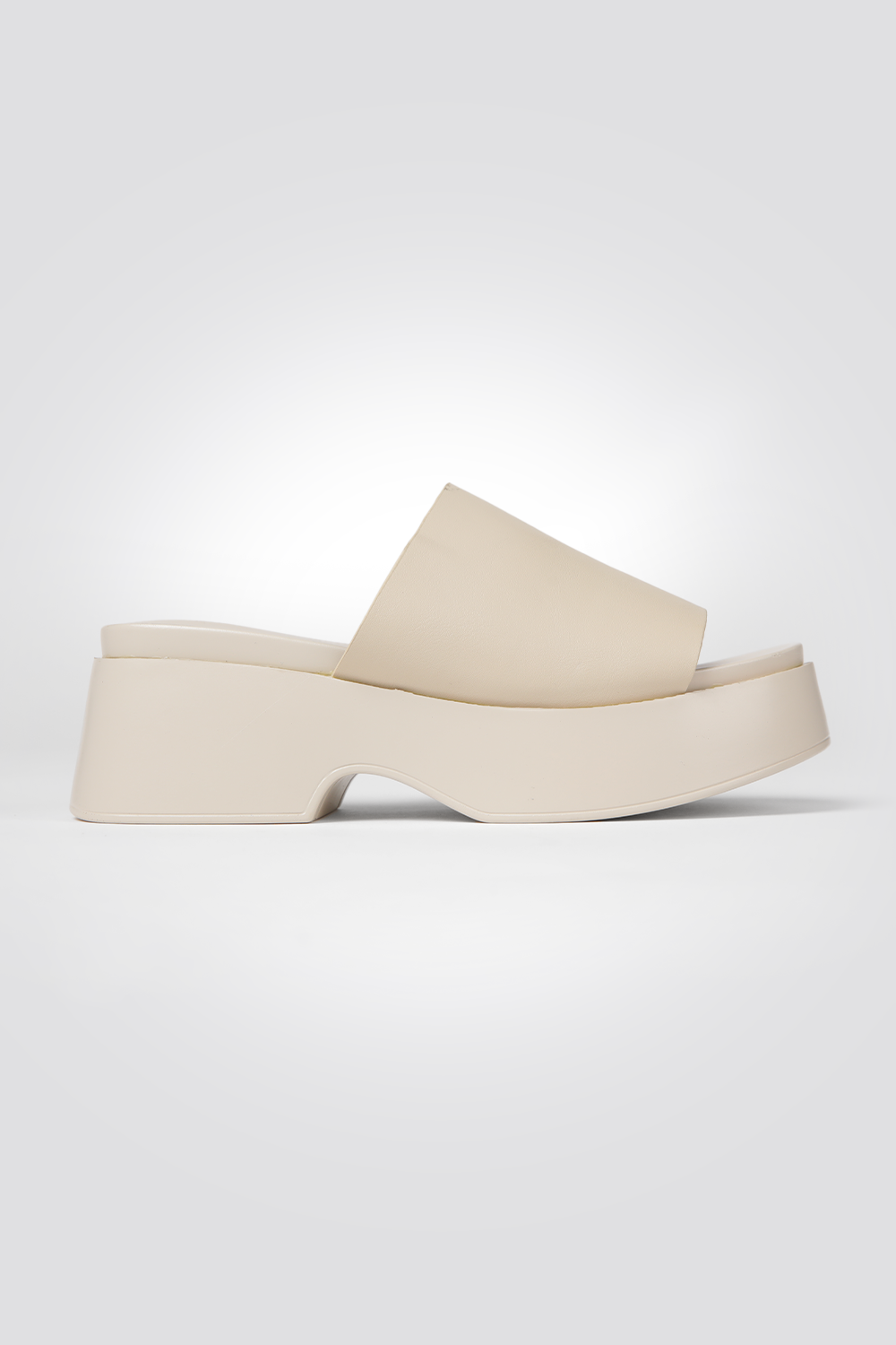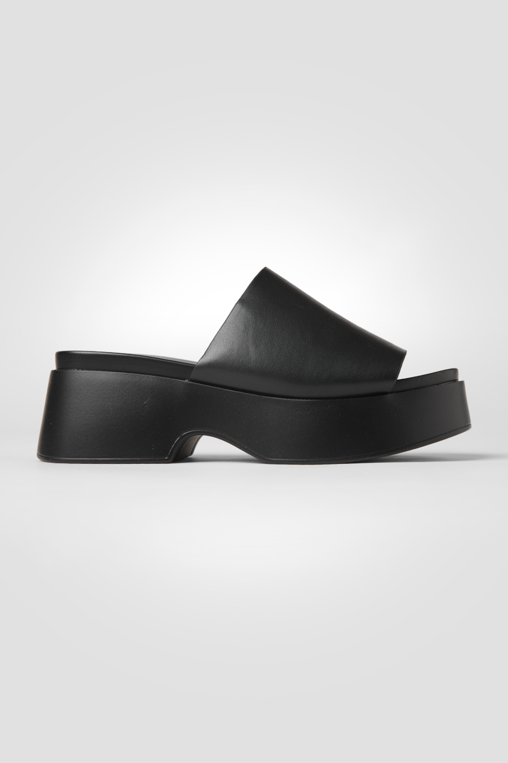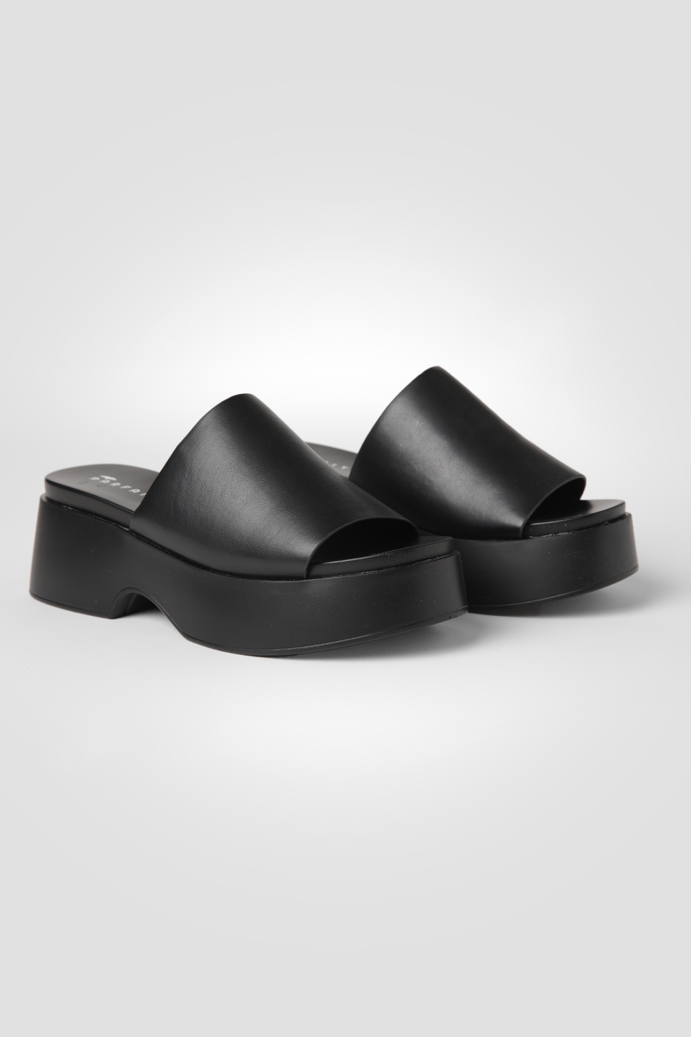כפכפי פלטפורמה דמוי עור עם רצועה רחבה