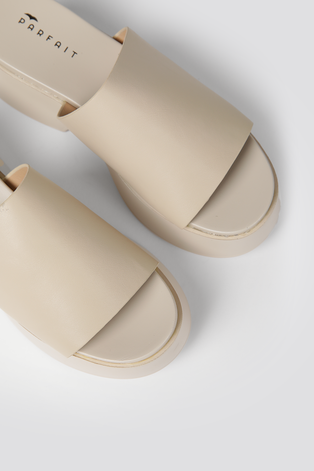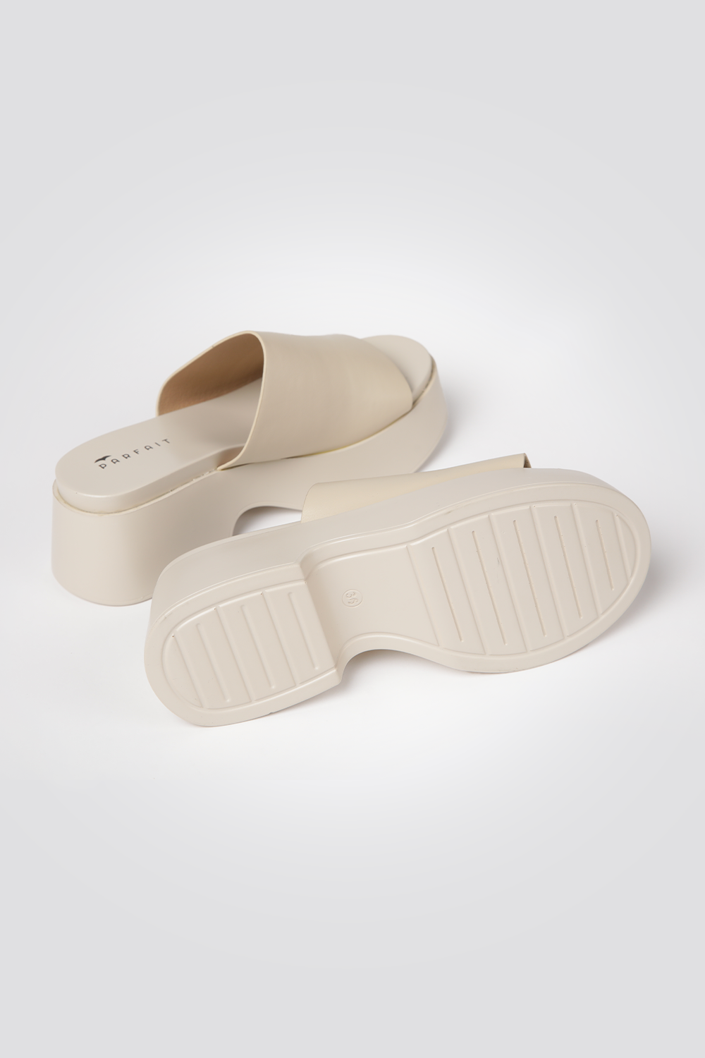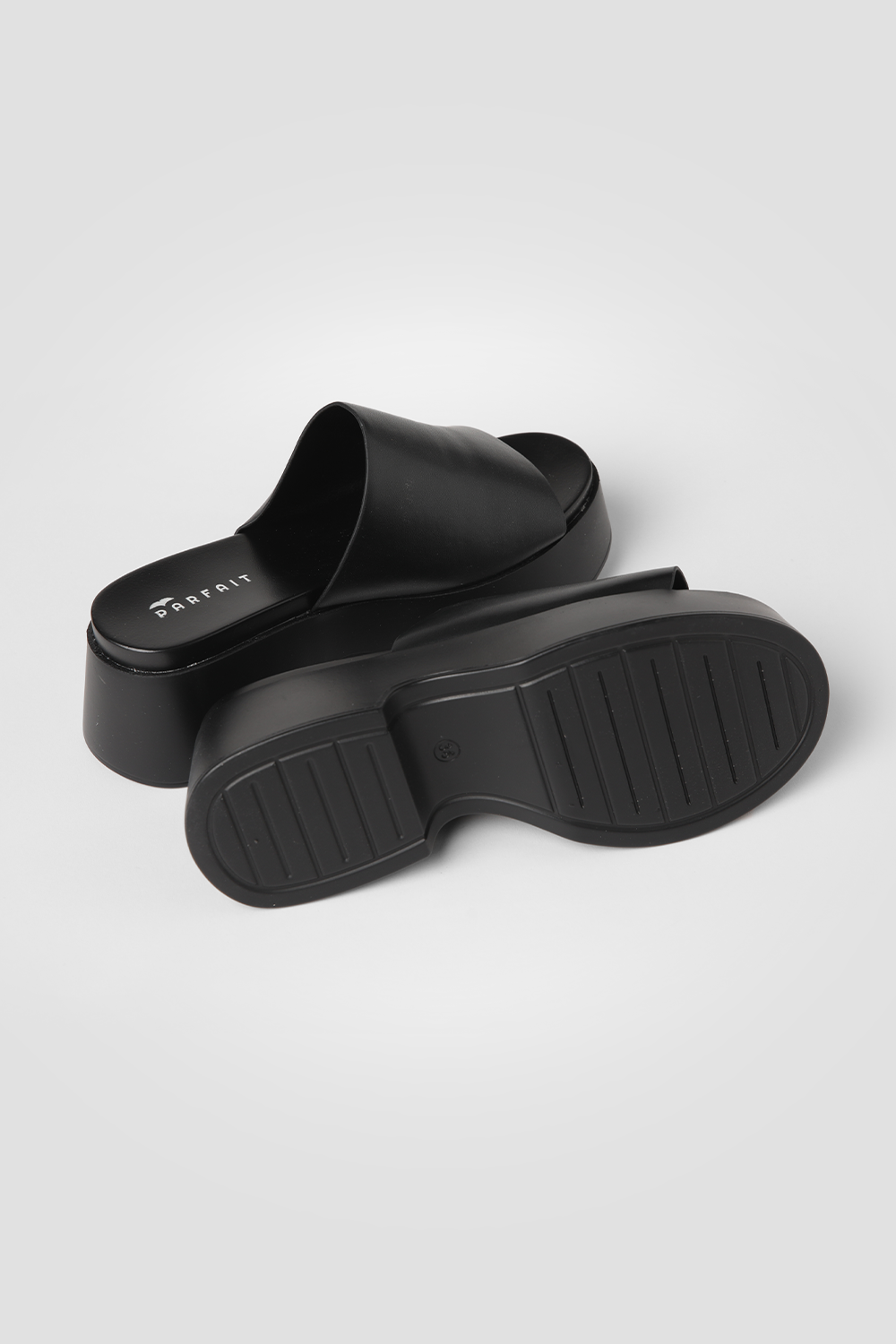כפכפים לנשים מבית המותג PARFAIT, עשויים בד דמוי עור, עם רצועה רחבה וסוליית פלטפורמה גבוהה.