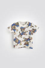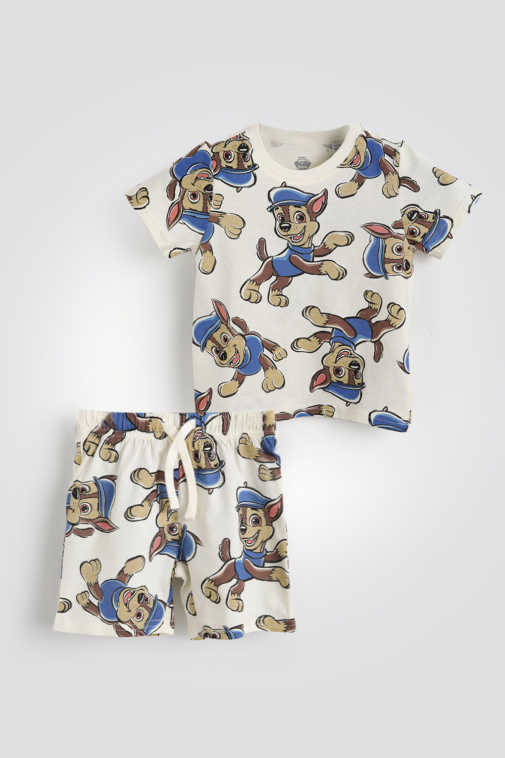 סט פיג’מה קצרה מבית המותג DELTA העשויה מבד דק ונעים בהדפס מתוק של מפרץ ההרפתקאות. חולצה עם צווארון עגול, שרוולים קצרים ומכנסיים קצרים תואמים עם גומי במותניים.