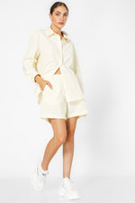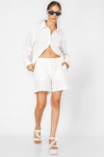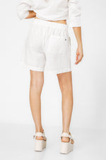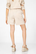 מכנסיים קצרים מבית המותג KENNETH COLE לנשים, במראה פשתן בגזרה משוחררת , סגירת כפתור ושני כיסים צדדיים.