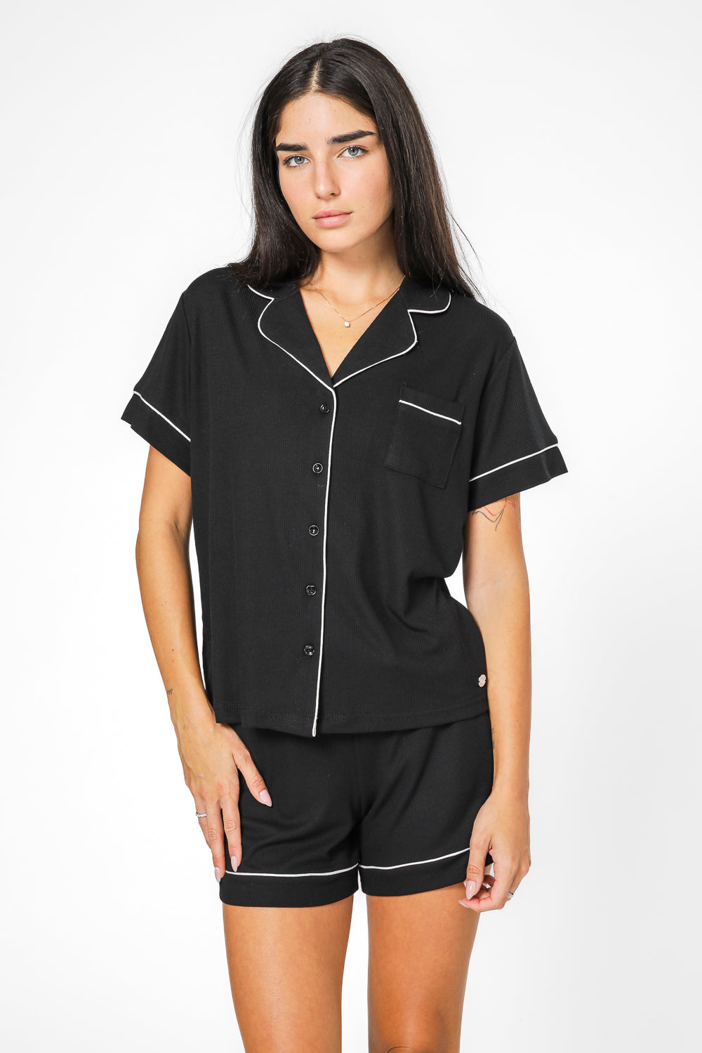 פיג'מה מכופתרת קצרה לנשים בצבע שחור