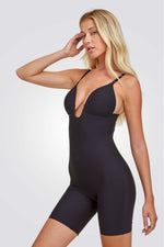 בגד גוף מחטב שחור עם מחשוף U ורגל